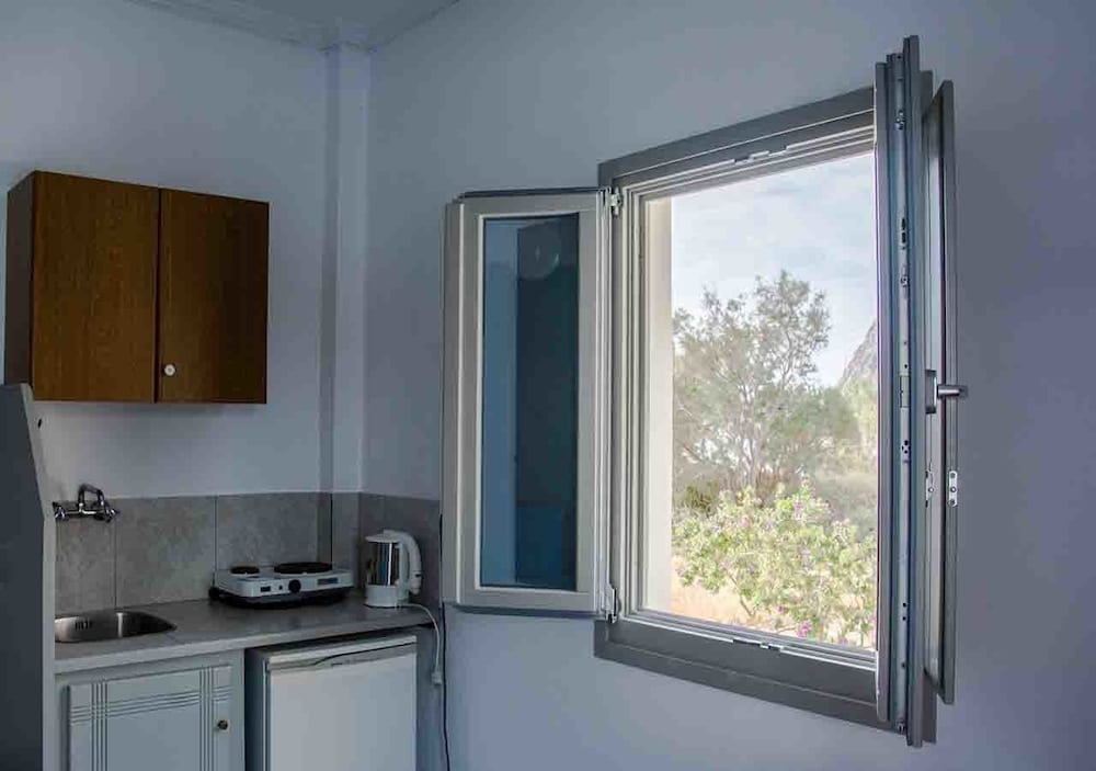 I loved this hotel. The kitchen amenities were perfect, with a cute little kitchen suite, dishes, hot plate, kettle, and more. There was also a good sized desk in the bedroom area. The balcony had a lovely view. The service was exceptional, and I would definitely choose this hotel again when staying in the area. The owners are very caring and responsive.