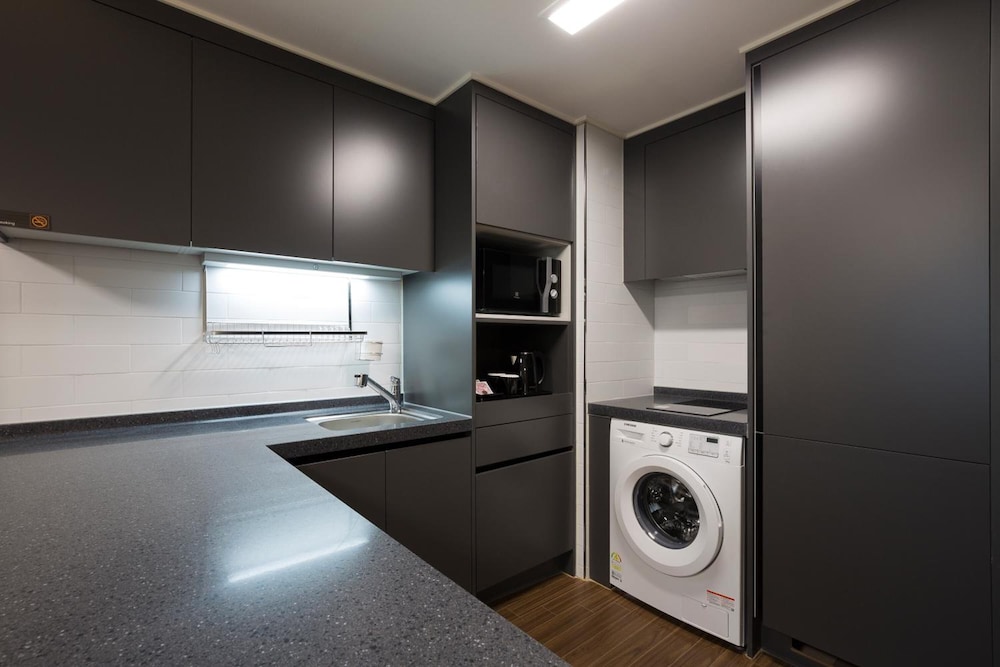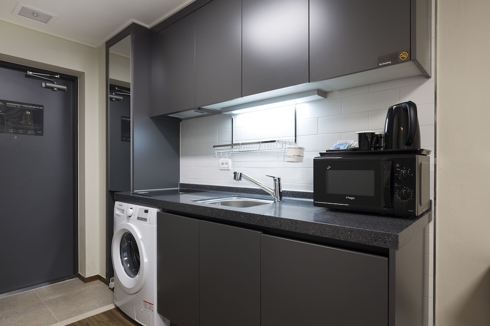 Please don't come here. The staff are RUDE (to both natives and foreigners). There also isn't ANY hot water. I asked some people on my floor as well and they also said they didn't have any. I stayed one night- thank goodness. Completely horrible experience. Save your money, do yourself a favor and stick with an ACTUAL hotel- not some converted officetel run by an angry potbellied man who looks at you with distain and no greeting whatsoever. I literally said hello to this individual 3 times and ended up calling the number listed for the "hotel". He picked up the phone call and spoke to the phone while I was standing there DIRECTLY in front of him. Such a bizarre experience.