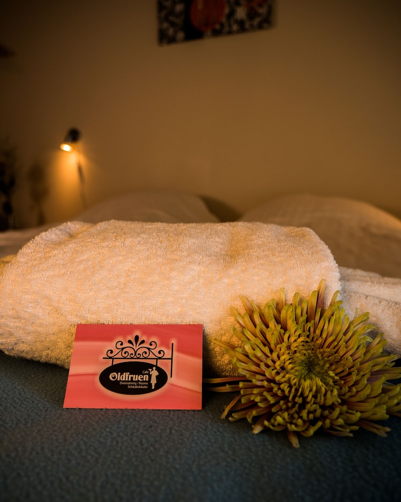 Vi har lige været på en super dejlig overnatning, der til fulde levede op til de ønsker vi havde. Vi havde ønsket handicap faciliteter, da min mor, der er kørestolsbruger var med os og alt var som vi havde forventet. Oldfruen ligger særdeles centralt midt på hovedgaden og der var stille og roligt. Dejligt at der i forbindelse med værelset er en lille terrasse. Eneste ting jeg savnede i køkkenet var en brødrister 😊