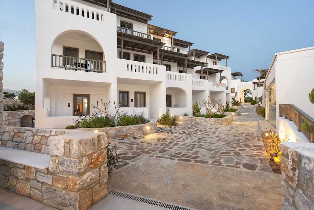 We stayed here for part of our Honeymoon trip. The hotel is convient to restaurants near by, within walking distance to bars, beaches, shops & bus stops right outside to get to Naxos town. The suites are right on the beach and great access to local access.