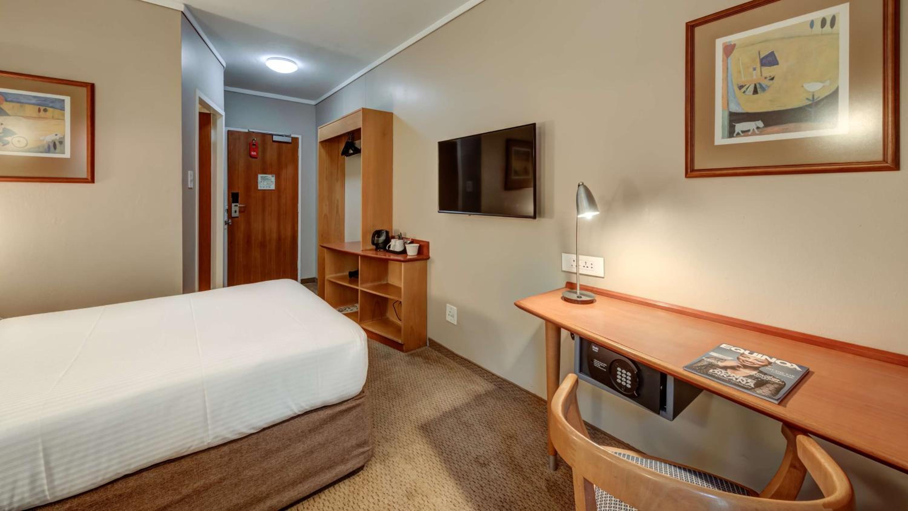 The beds are tired, the linen and towel are discolored with marks on them, the Carpert has a musty smell and the showers are loud, even Sun1 is better than this place, they charge you R35 for a bottle of water costing R13bucks, They should not offer breakfast as their level of cooking is very disappointing. Have slept a couple of times here but what confronted me yesterday I was very disappointed, the old Lady behind the counter is tired for her to be working at that time of night. Thanks but no Thanks