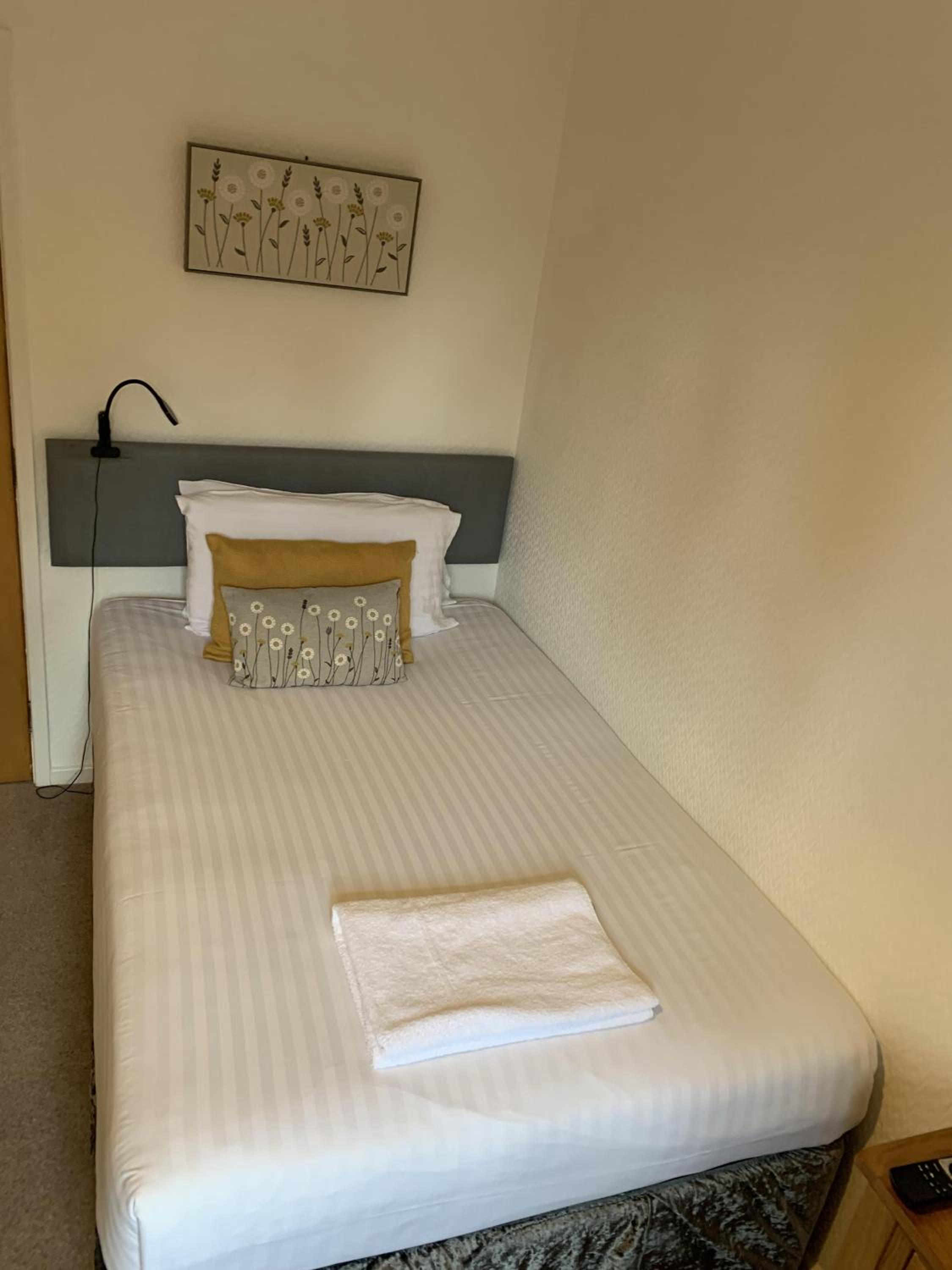 The room was cold with an inadequate radiator that was covered by the curtain. Not enough toilet paper and no spare roll. No bedside light or ability to turn off light from the bed. Very poor hot water pressure.