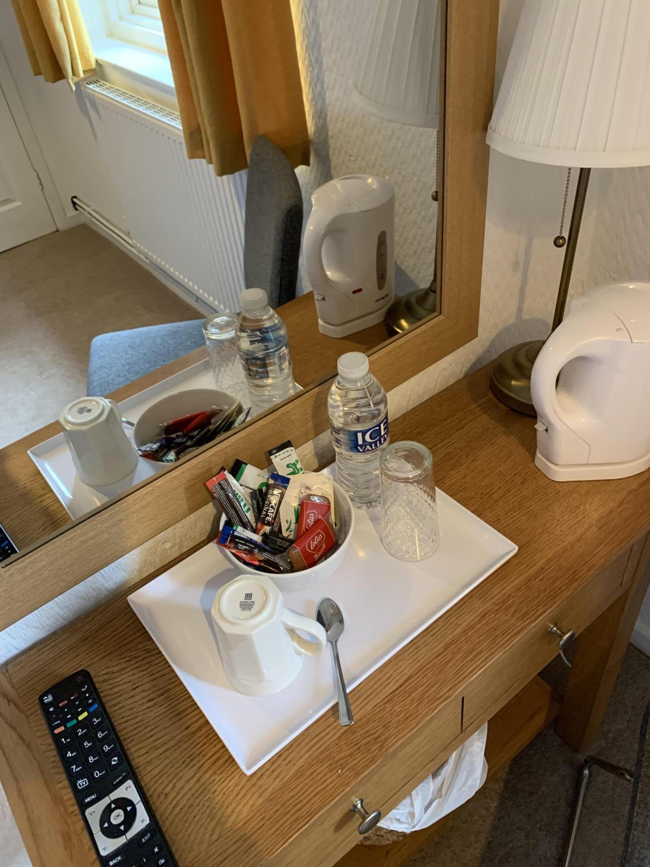 English breakfast cooked to order, lovely. Huge teapot with three mugs worth of tea in it. Large cups to drink from. Lady in the kitchen very friendly. Garden view as promised. Across the road from Cadbury World.