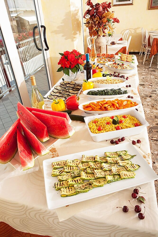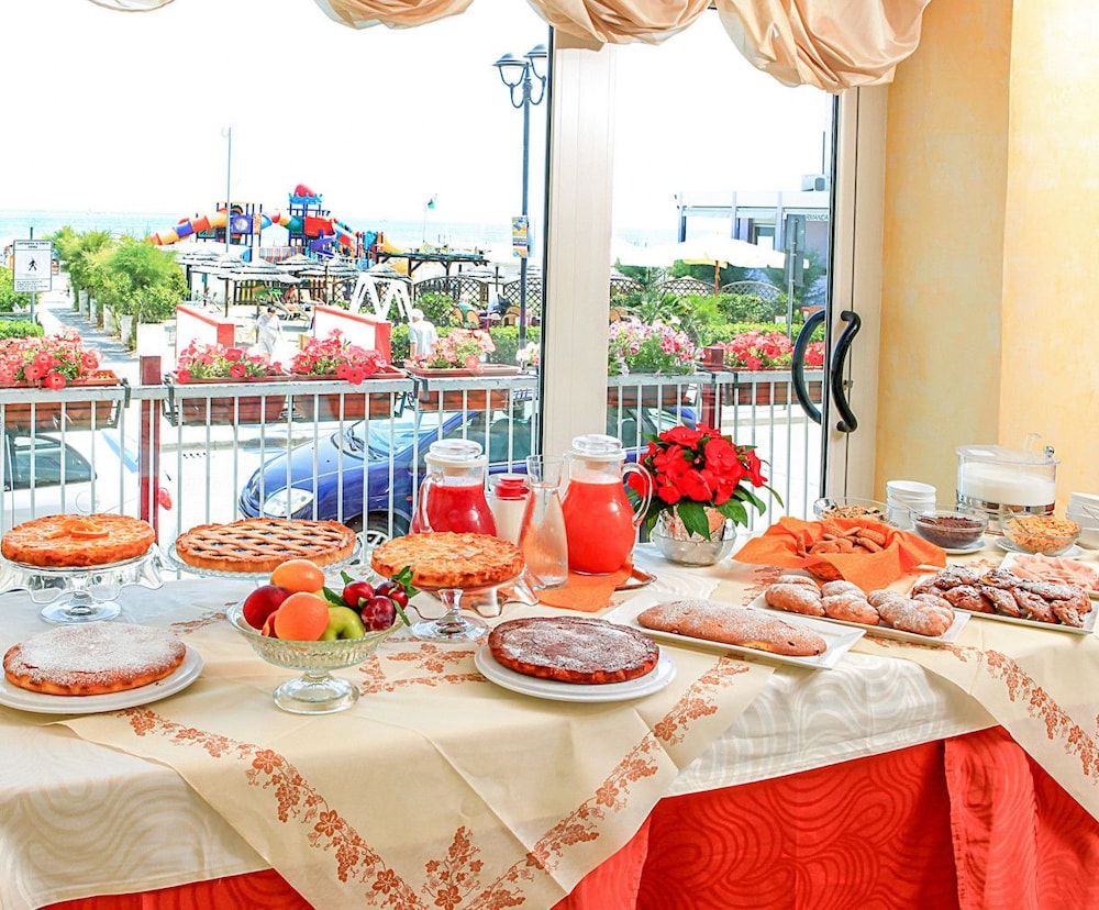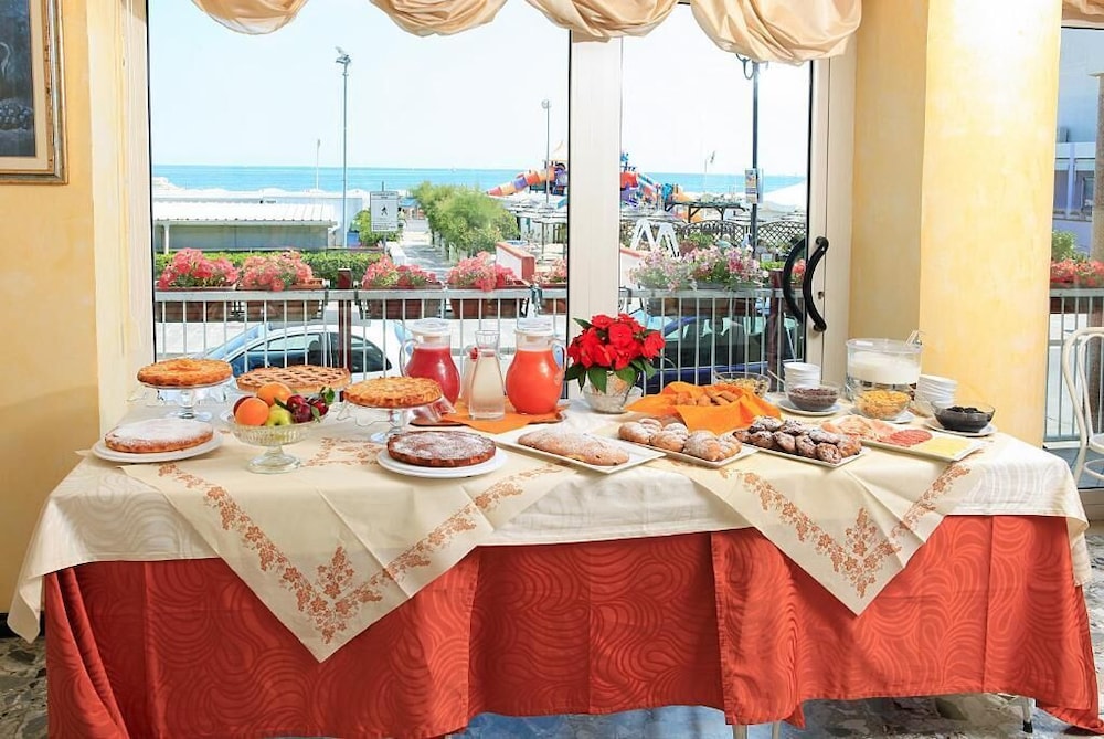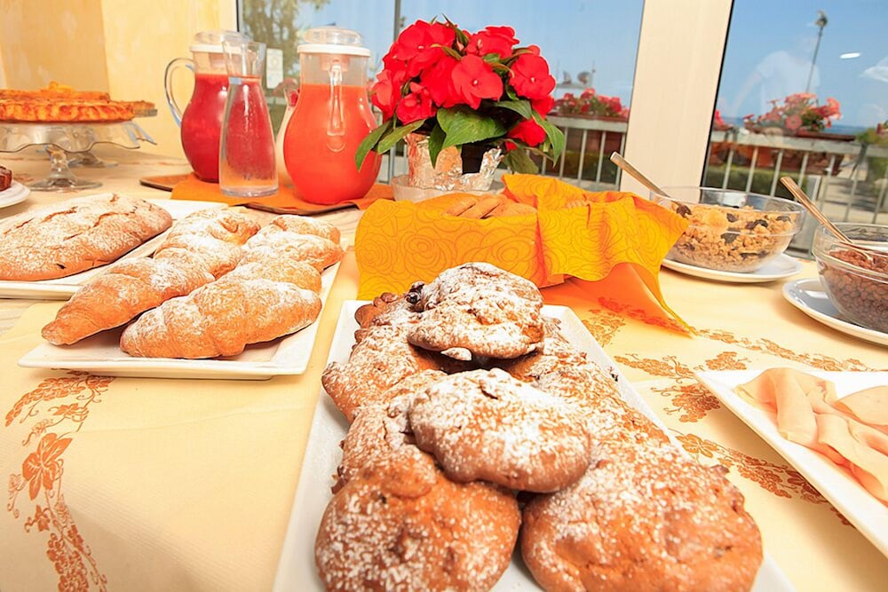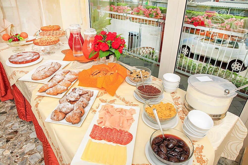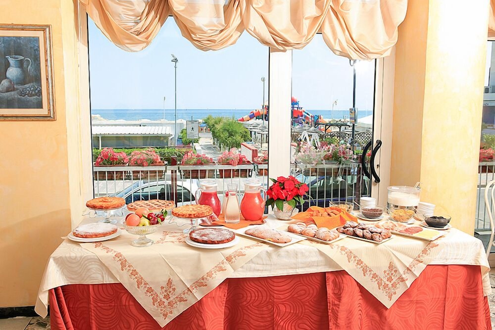 At Hotel Sara, indulge in picturesque views from the terrace and garden as you revel in the complimentary wireless internet. Dining Delights, savor delectable meals at the restaurant and unwind at the bar/lounge. Wake up to a delightful start with a complimentary buffet breakfast daily. Convenient Comforts await with amenities like luggage storage, safe deposit box, and free onsite parking. Retreat to one of the 35 cozy guestrooms equipped with modern essentials, including a flat-screen TV and private bathroom. Explore nearby attractions such as Lido San Giuliano and Tiberius Bridge. Book your serene stay at Hotel Sara today and discover the beauty of Rimini.