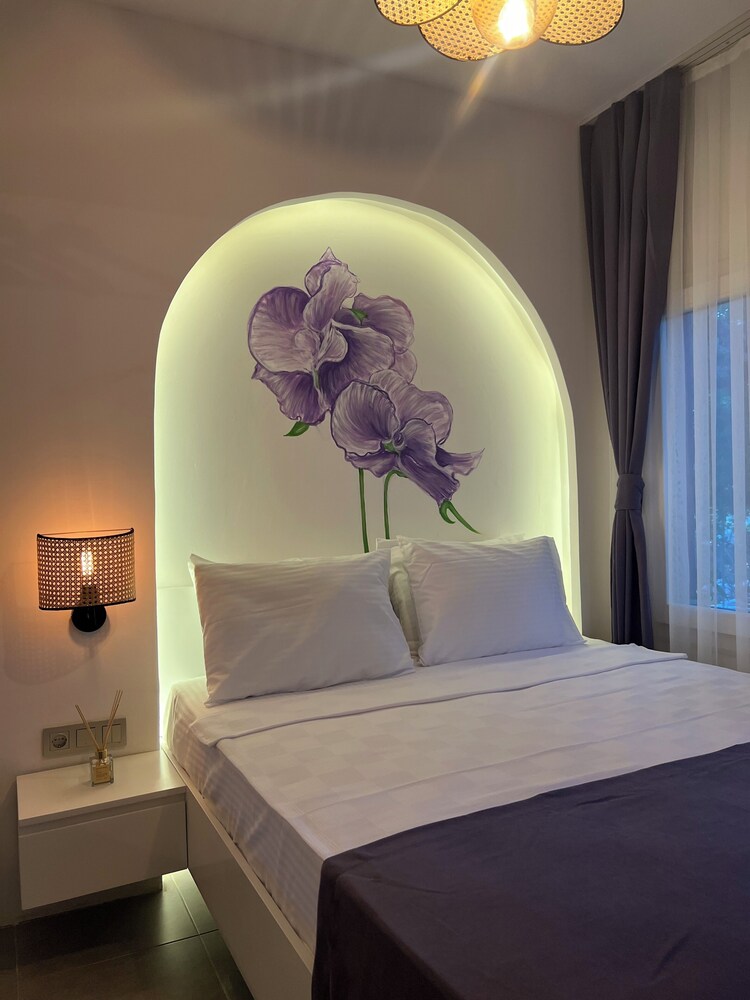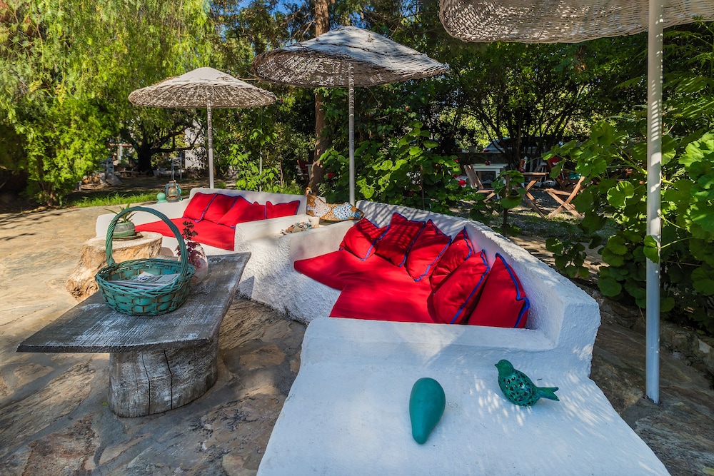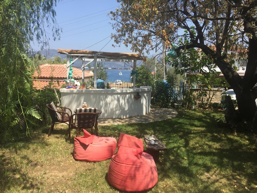 İçinde nar, mandalina, limon ve muz ağaçlarının ve bir sürü çiçek ve bitkinin olduğu şahane bir bahçenin içinde çok sevimli bir pansiyon.
