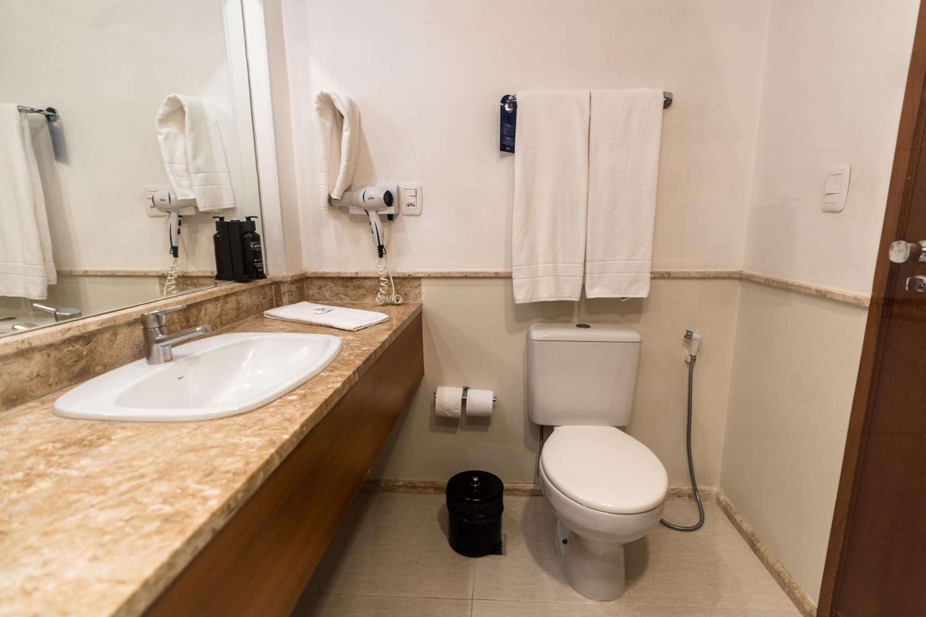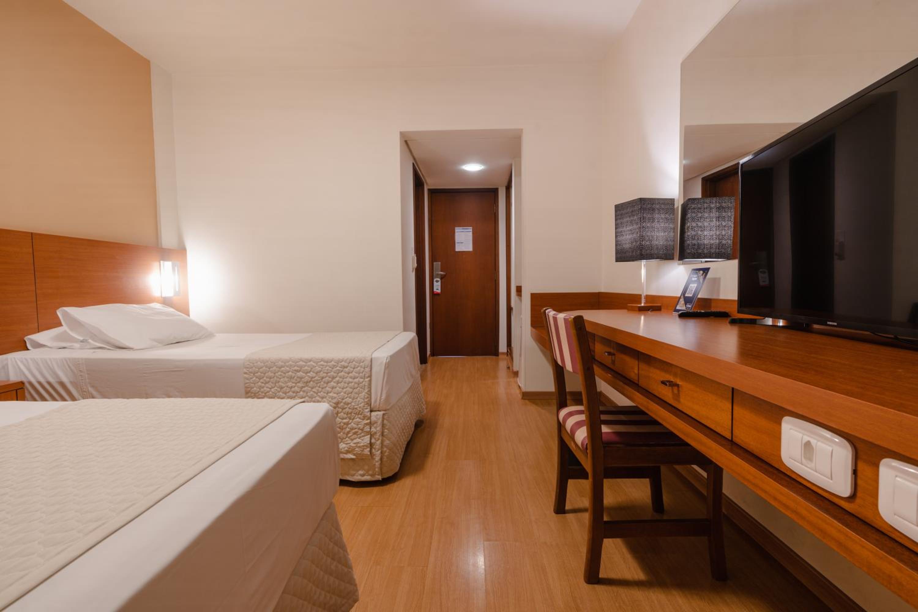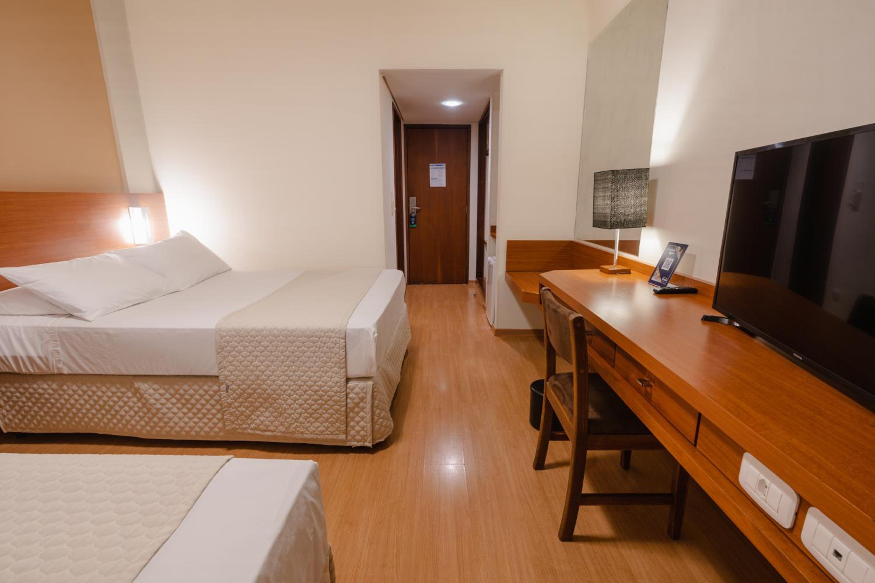 Quartos com banheiros amplos, roupa de cama e arrumação impecável. Check in e check out muito rápido. Parabéns!