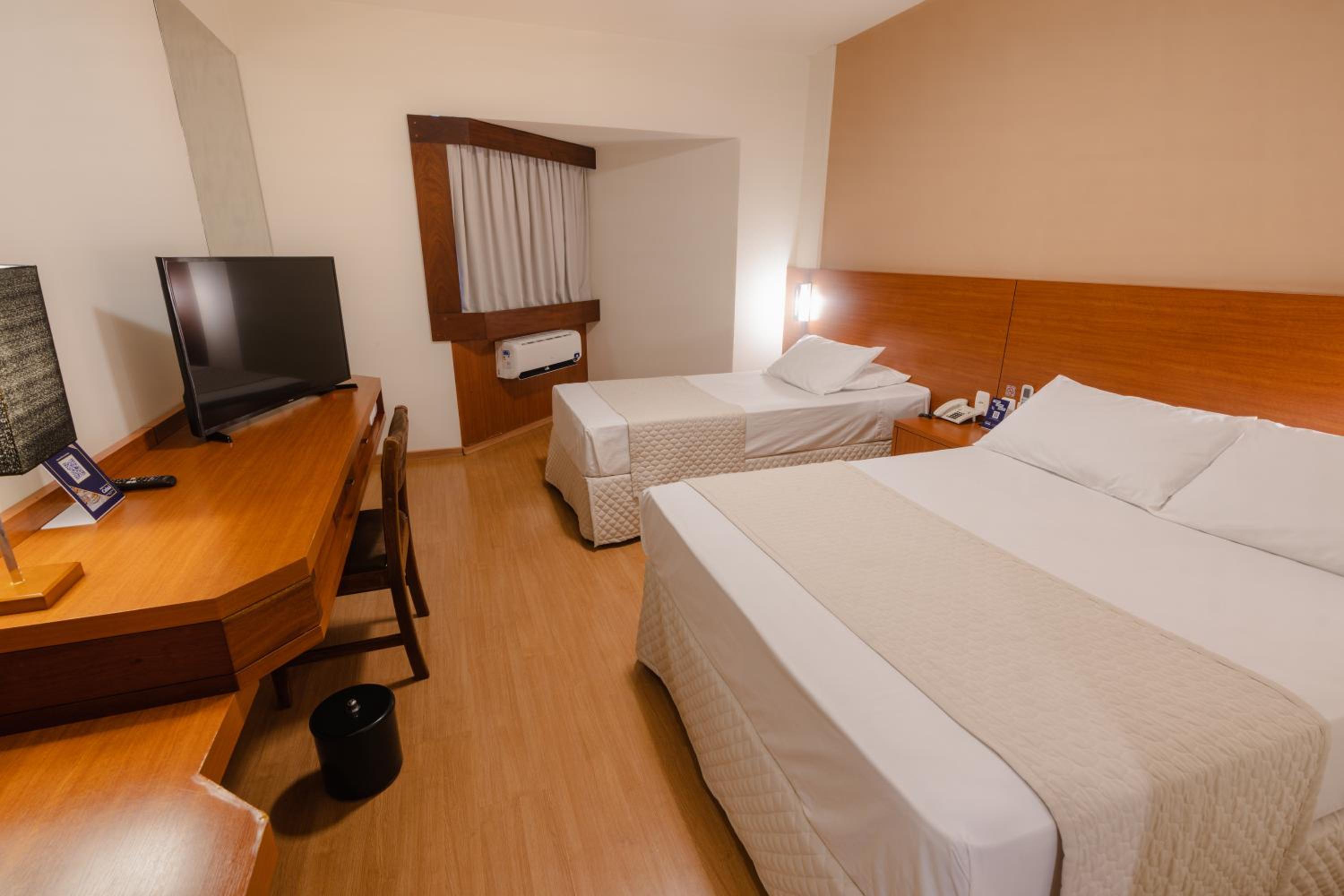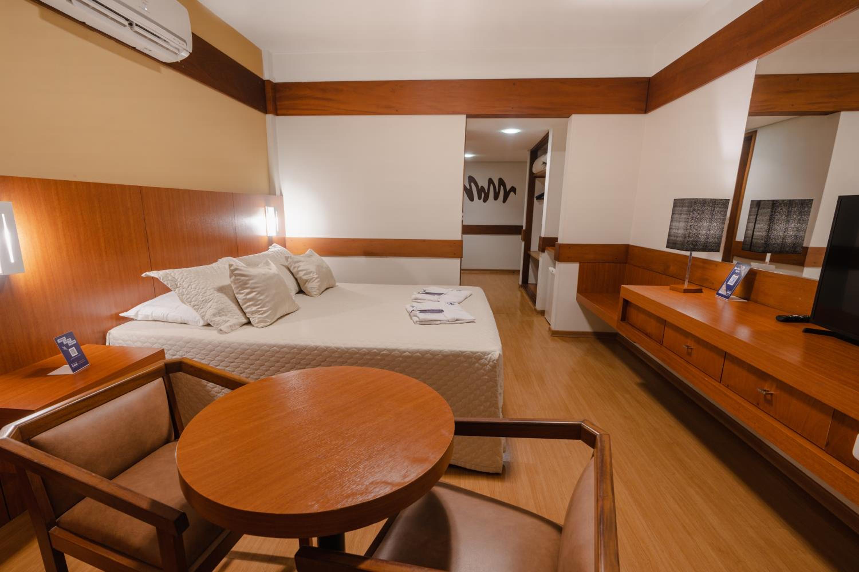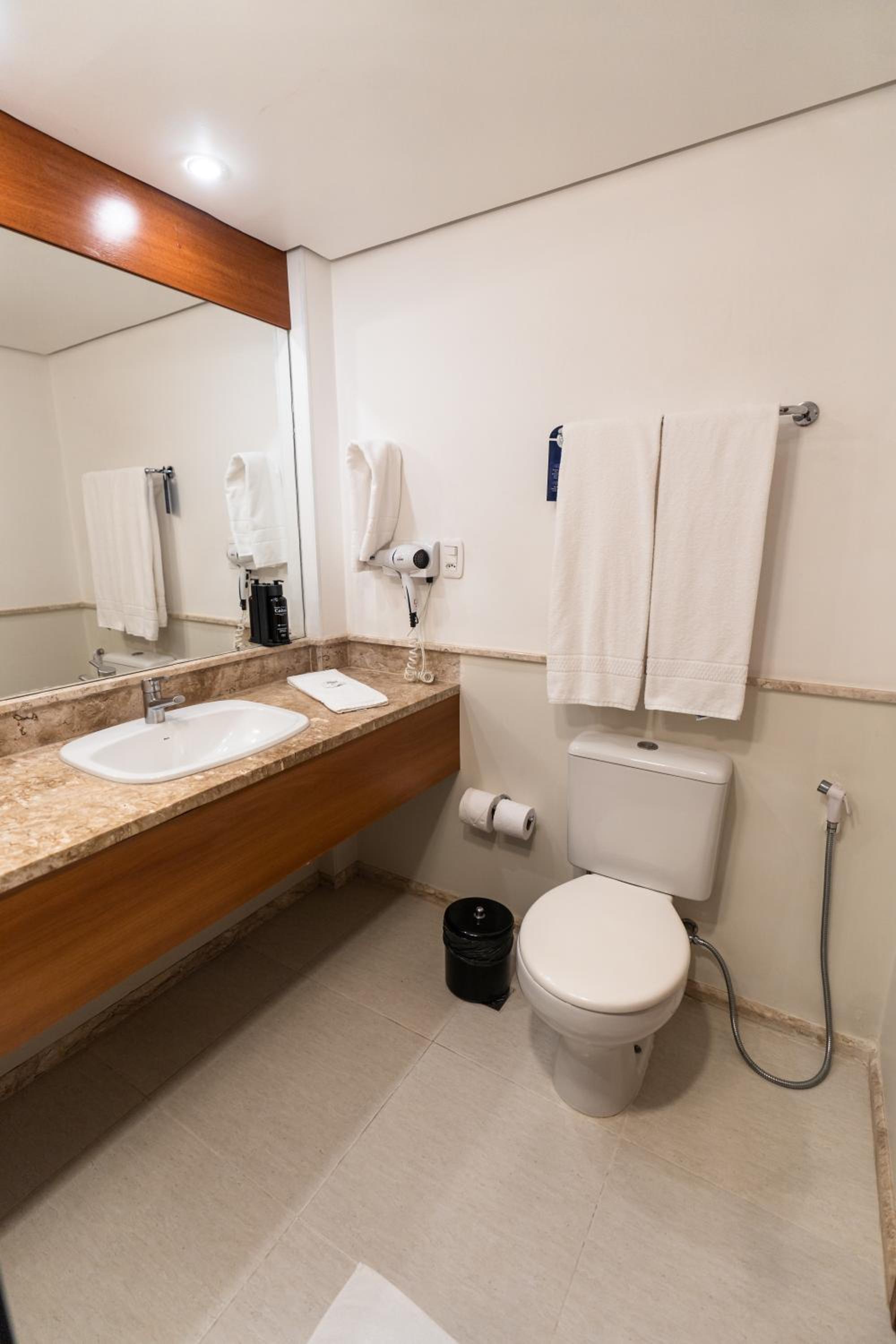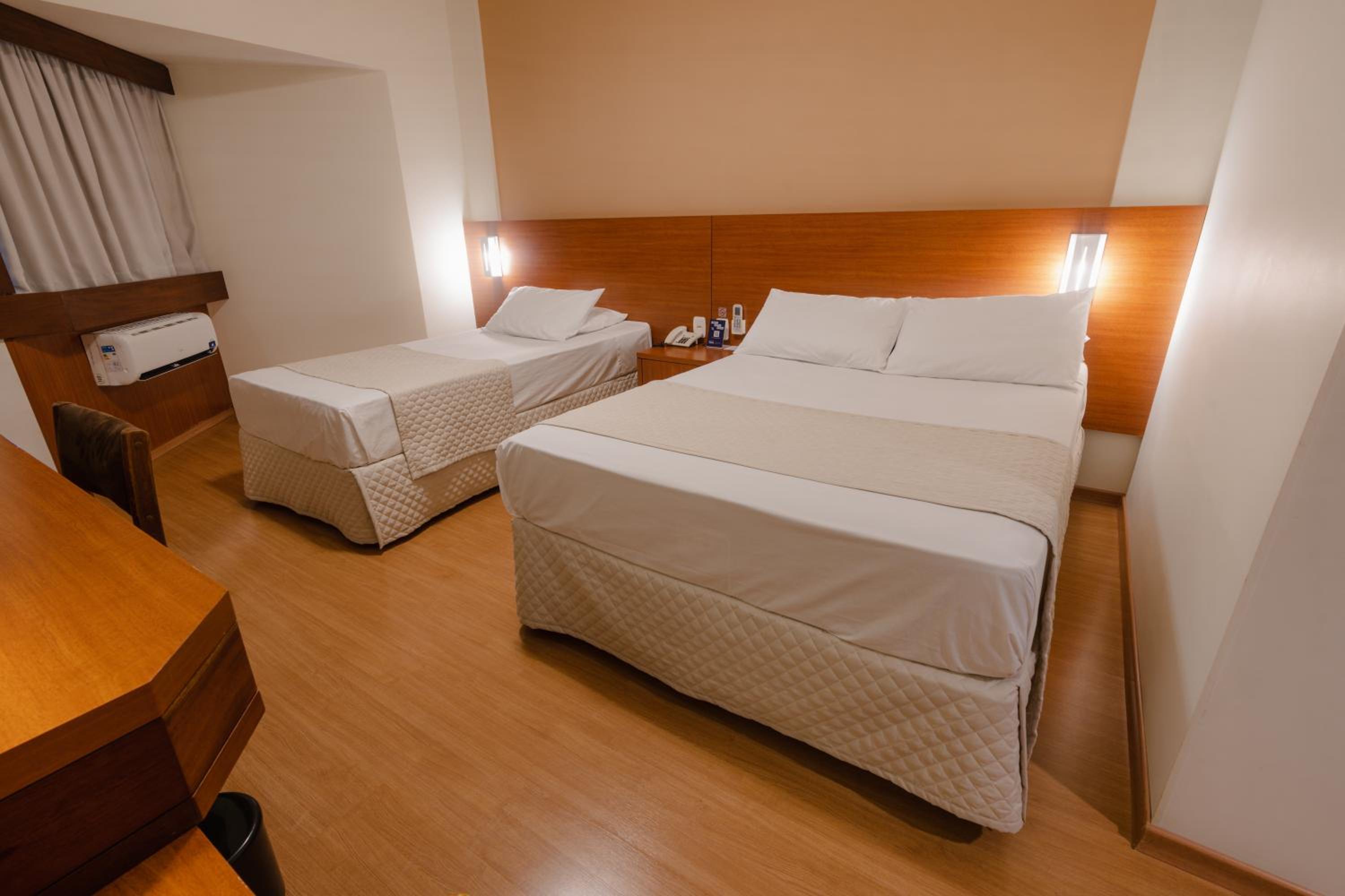 Quartos com banheiros amplos, roupa de cama e arrumação impecável. Check in e check out muito rápido. Parabéns!