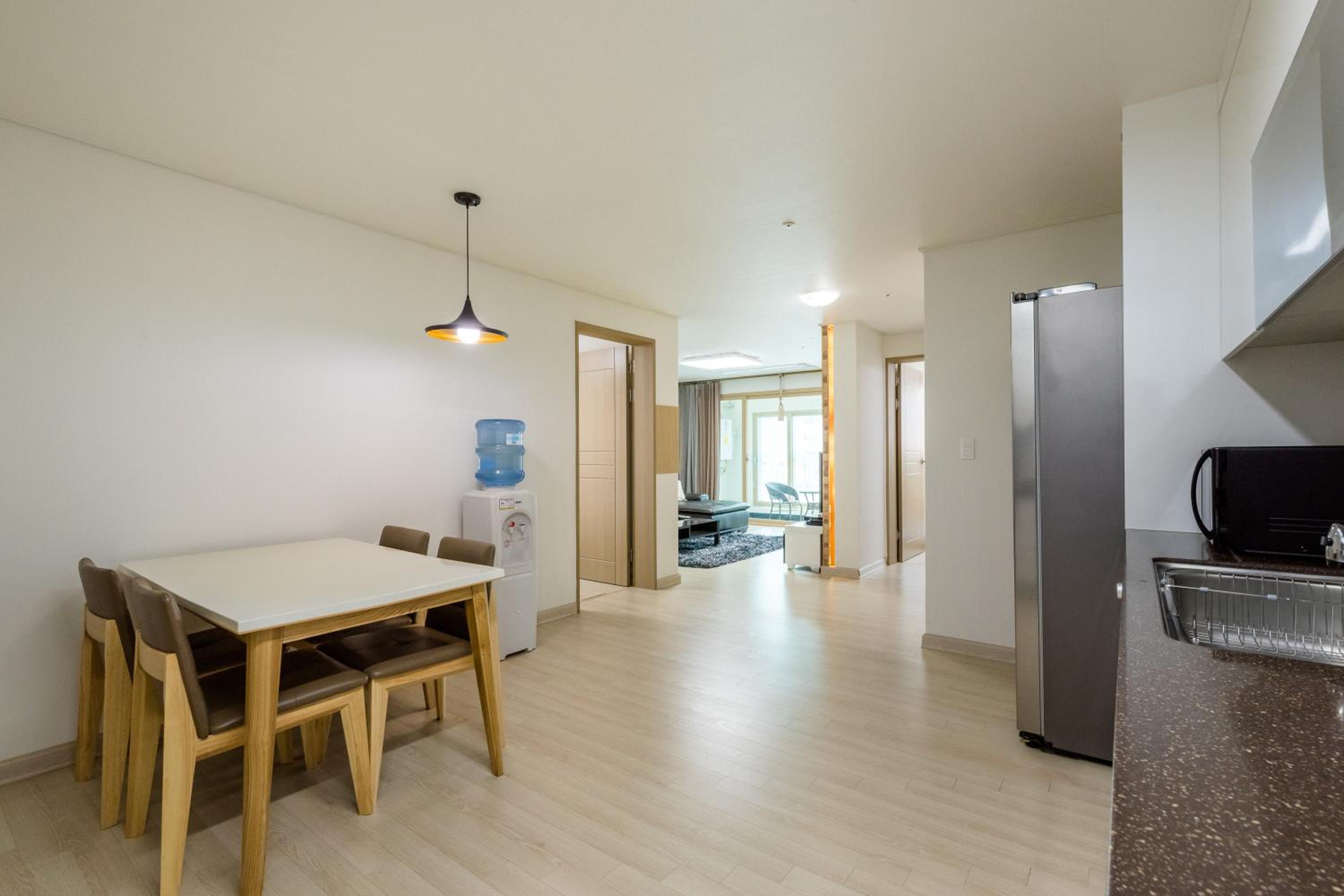 Located in Geoje, Home Fourest Residence Hotel offers a beachfront experience with free WiFi and private parking. The aparthotel's family rooms provide comfort and convenience for guests.