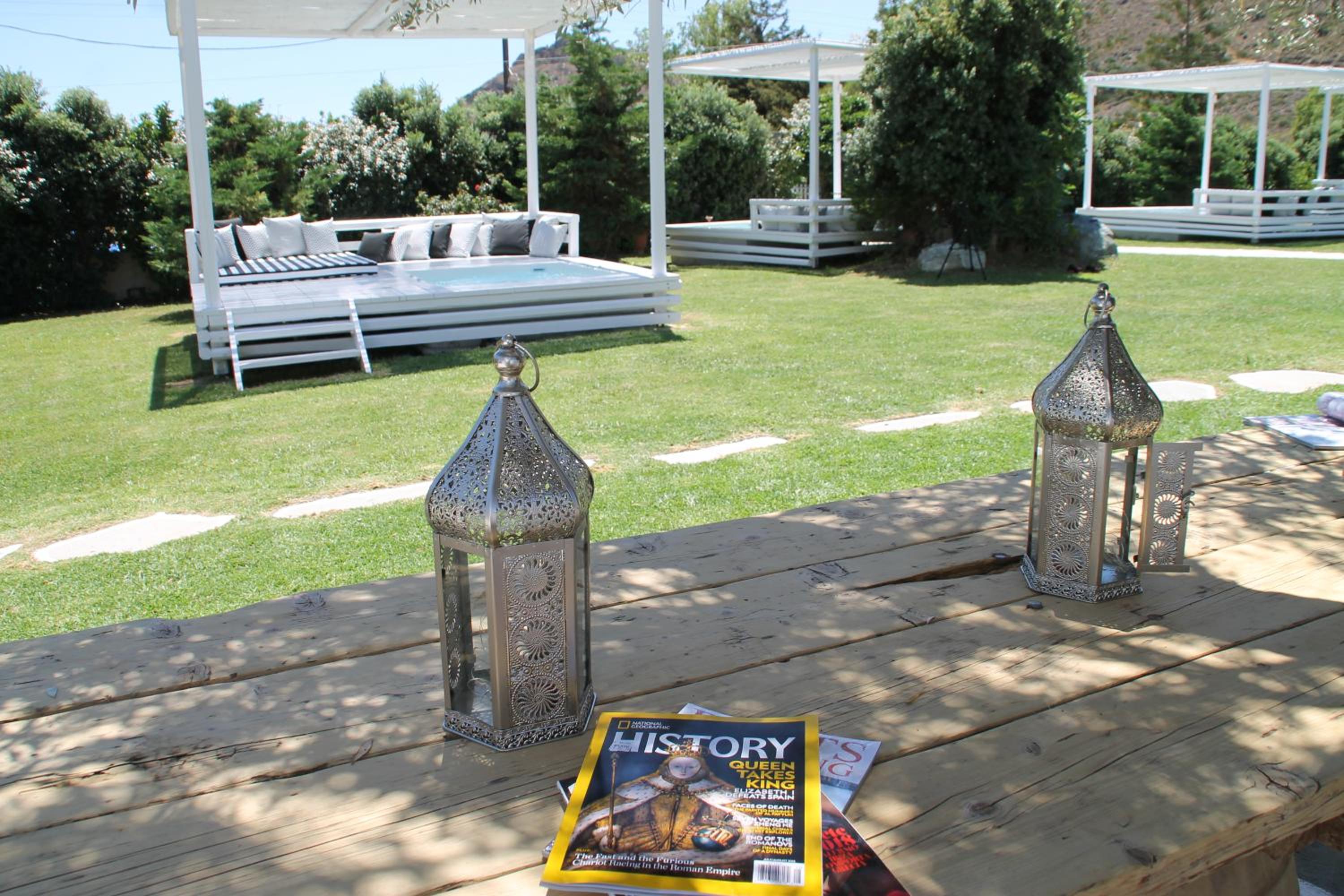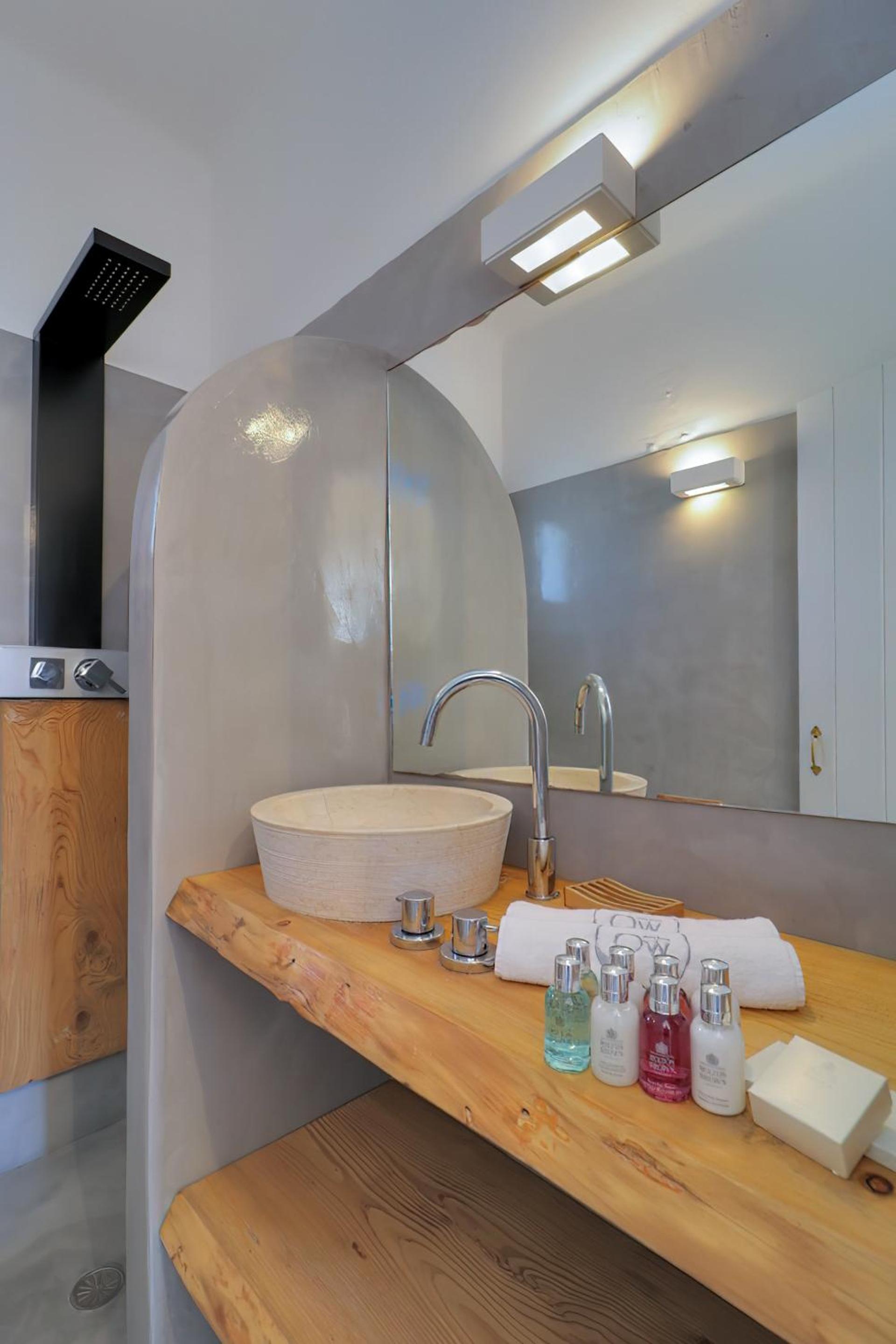 Where to begin… both interior and exterior are gorgeous! the pool and the jacuzzi are great. It is luxurious but in a very subtle way. The perfect place to relax. You have privacy, yet there is a beautiful lawn ideal for kids or dogs. Mihalis (the host) is very kind and hard working, always making the guests comfortable. Breakfast was also rich and tasty. The water in the shower was from the sun, so the place is good for eco tourists.