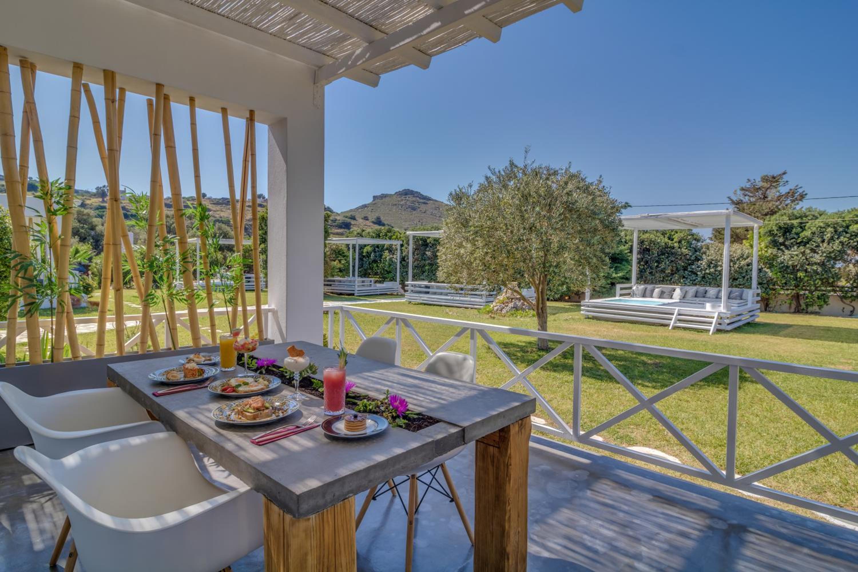 Elegant peaceful private!!! Our suite was spotless and beautifully designed modern but with island soul. The garden was green, everywhere colorfull flowers and everything smelled like summer.