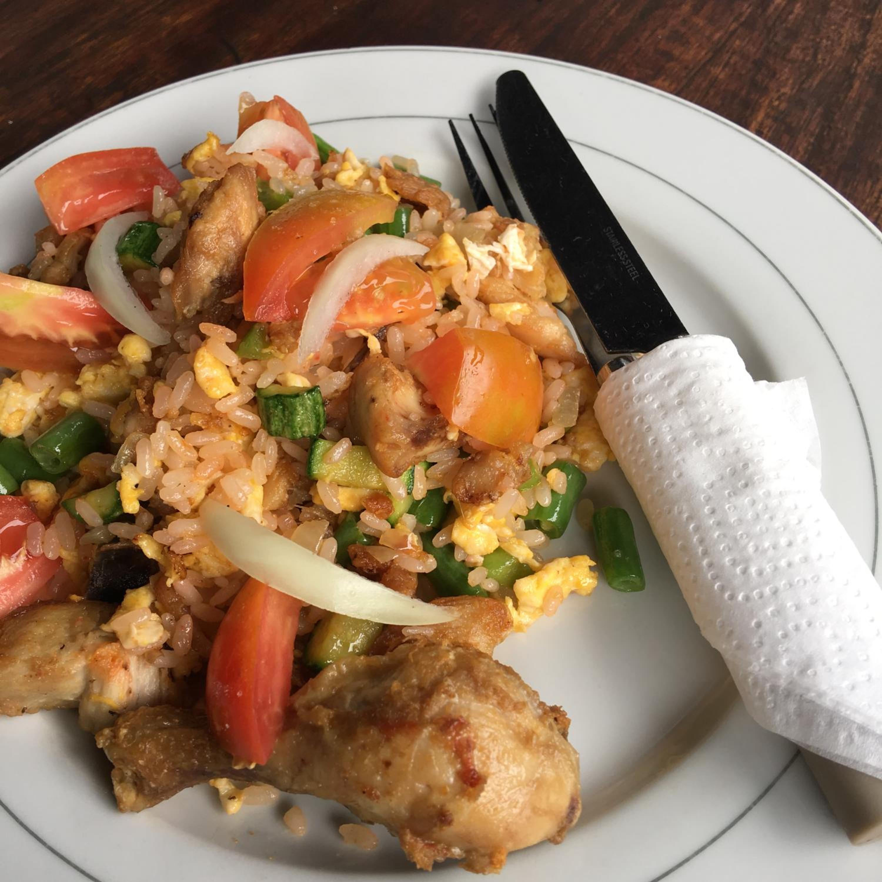 mosquito net had wholes and the door a gap so it’s not mosquito safe, breakfast takes some getting used to with instant coffee and fries