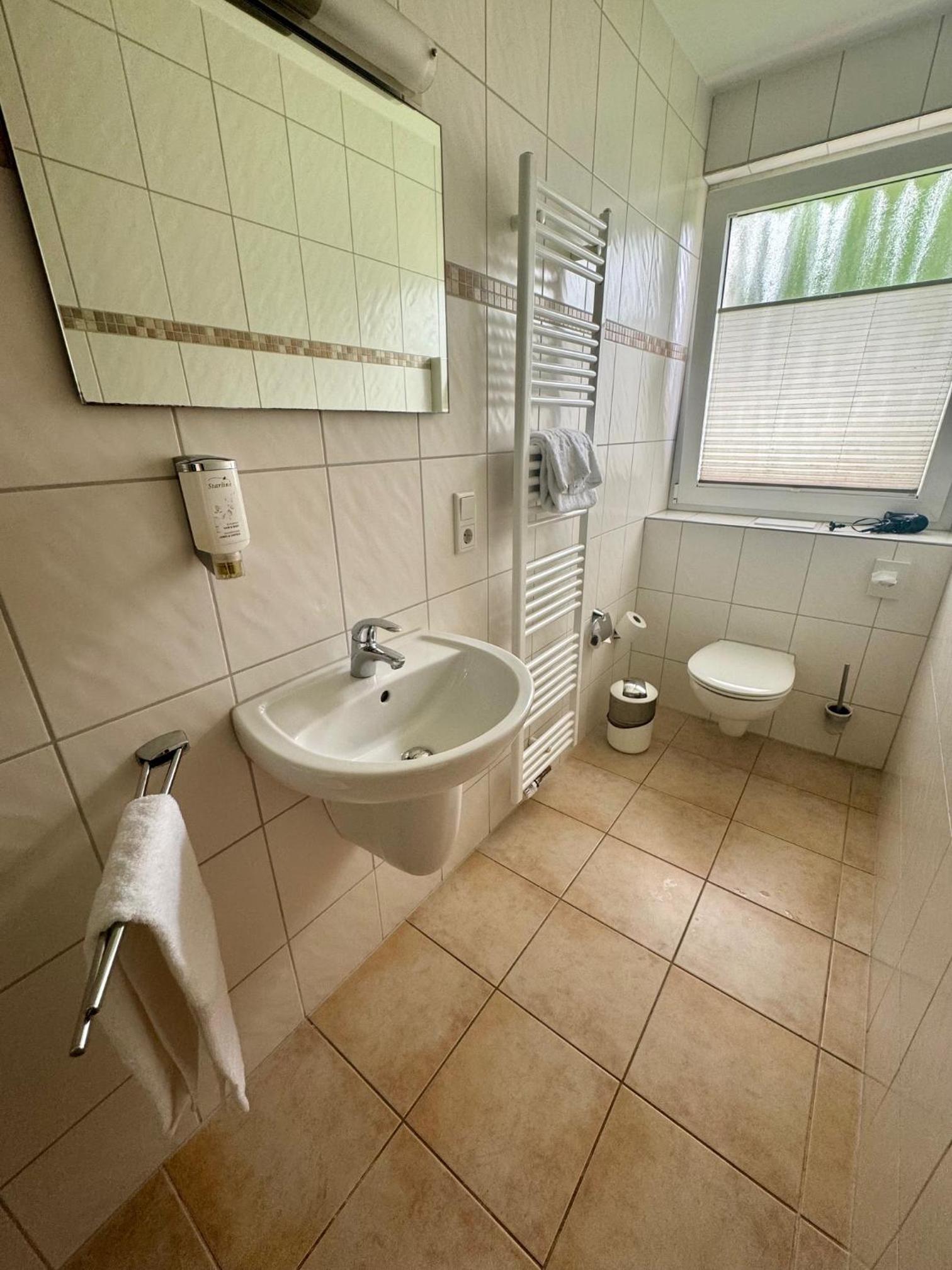 Es gibt Nix zu beanstanden außer das in der Toilette ein Klopapier Halterung fehlt und in der Dusche eine Abstell Möglichkeit für das Duschgel und Haarwäsche