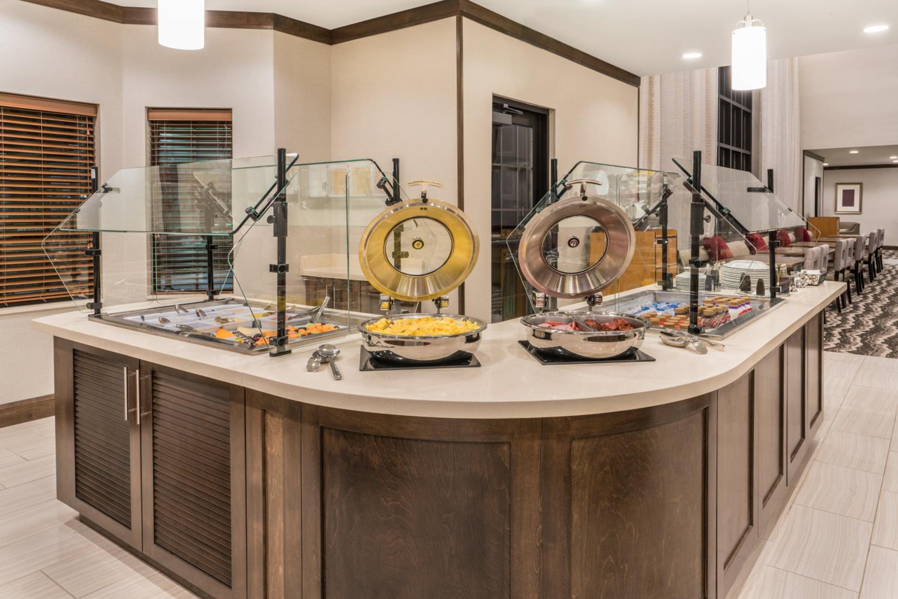 Great selection. Hot items were hot and cold items were cold. Seating was good. Enjoyed the fireplace. Easy walk to the restrooms. Nice pool, even though I didn't use it. Coffee pot in the room was fantastic, I could make hot water for tea when I first got up. Garbage disposal was quite a surprise. Bed was super comfortable. Loved the couch or sectional in my room, think I will have to look into one of those for my home.