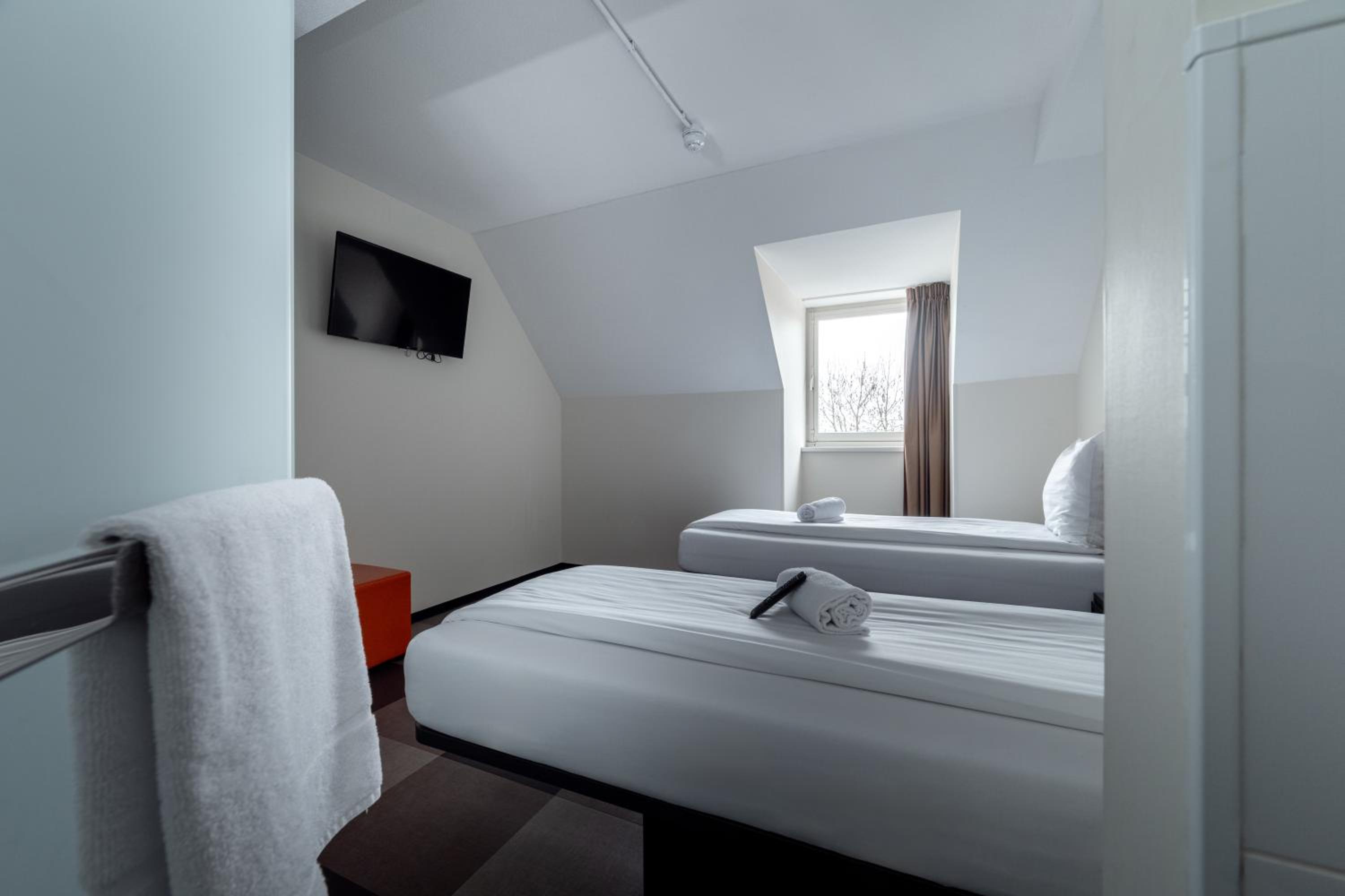 Das Hotel hat eine super Lage direkt an der Maas. Es ist simpel, praktisch, sauber und bequem. Die Zimmer sind klein, aber sehr gut durchdacht. Das Preis-Leistungsverhältnis ist unschlagbar. Es gibt keine Deko, keine Rüschen und kein Firlefanz, aber sehr bequeme Betten, Duschen mit perfektem Wasserdruck und den geschmeidigsten Check-in Prozess, den ich kenne. Ein super Platz zum Schlafen!