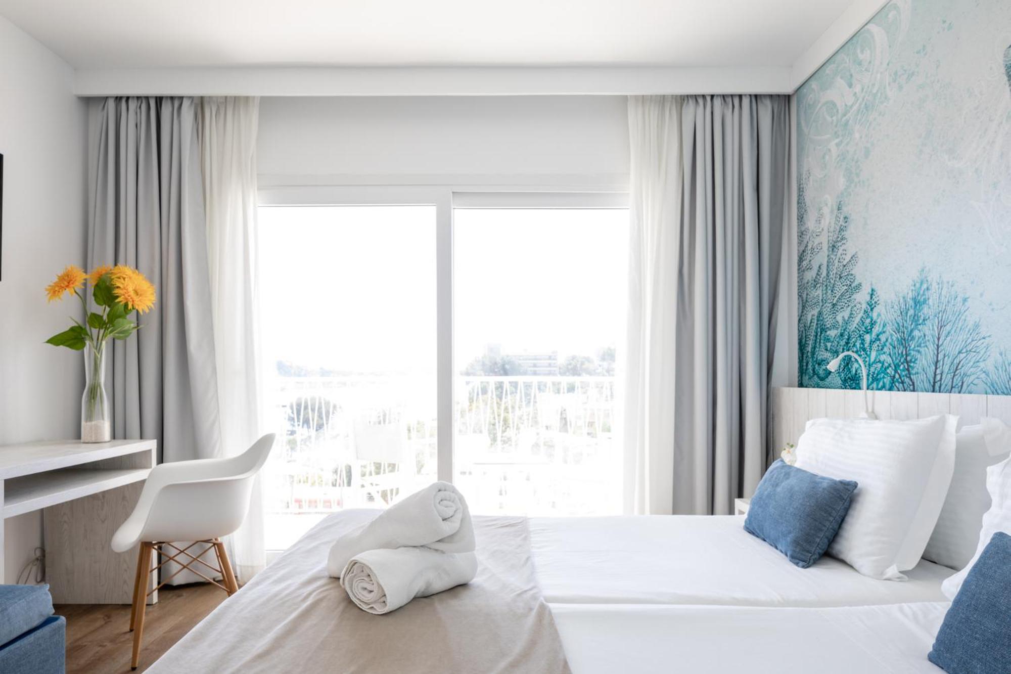 Step into the spacious rooms at Hotel Torá, each equipped with a private terrace, air conditioning, and satellite TV. The tiled floors and large windows create a bright and cozy ambiance, with many rooms boasting stunning sea views.