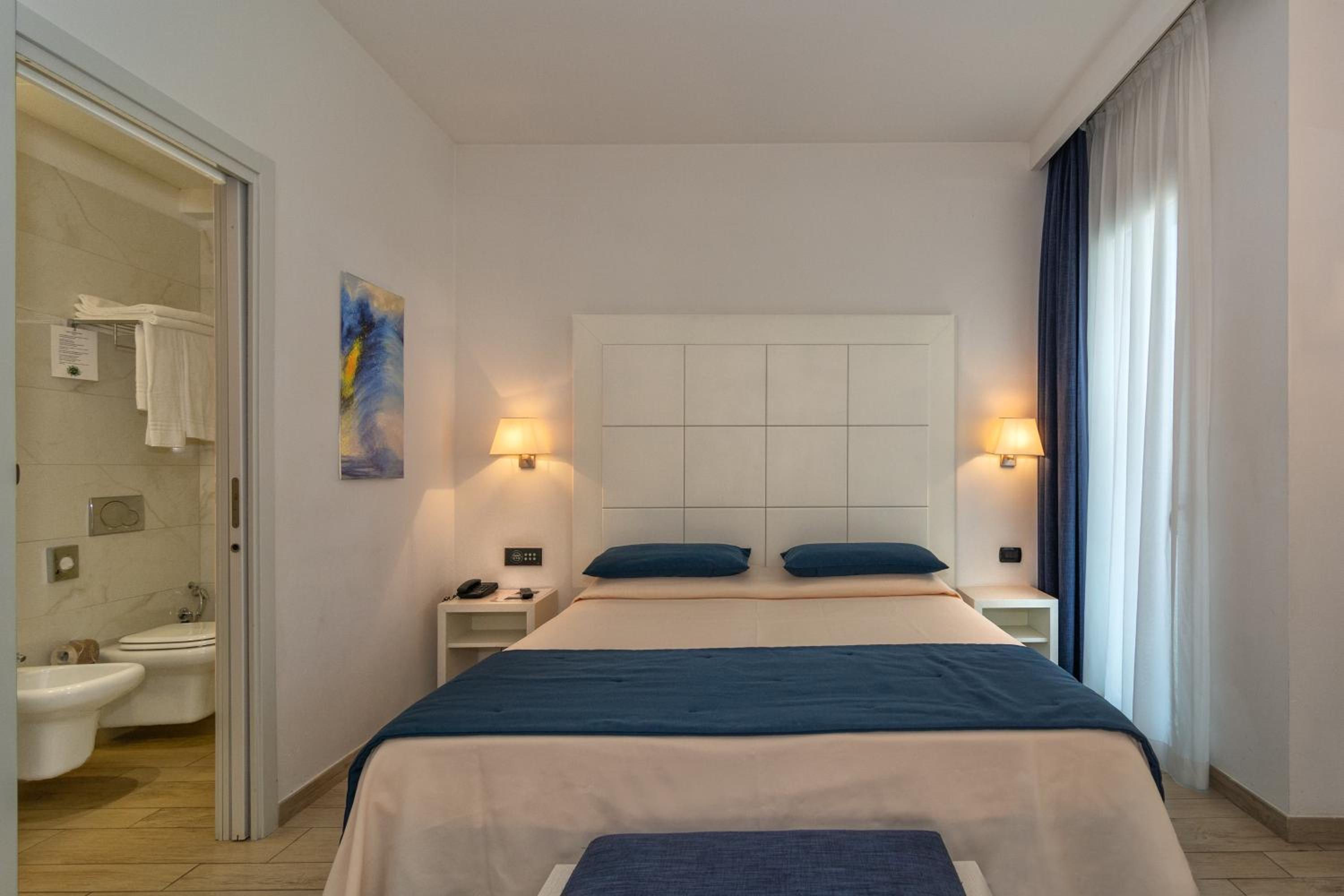 Abbiamo soggiornato presso questo hotel purtroppo solo una notte, ma l’esperienza è stata molto positiva. Hotel pulito, accogliente e spazioso. Colazione ricca con tavoli all’esterno vicino alla piscina, ampio parcheggio interno con un plus di un parcheggio esterno gratuito. Posizione ottima a 10m dal mare. La camera eccezionale veramente spaziosa quella con terrazza si piscina! Staff gentile e disponibile alla fine del soggiorno ci hanno regalato anche un loro gadget!