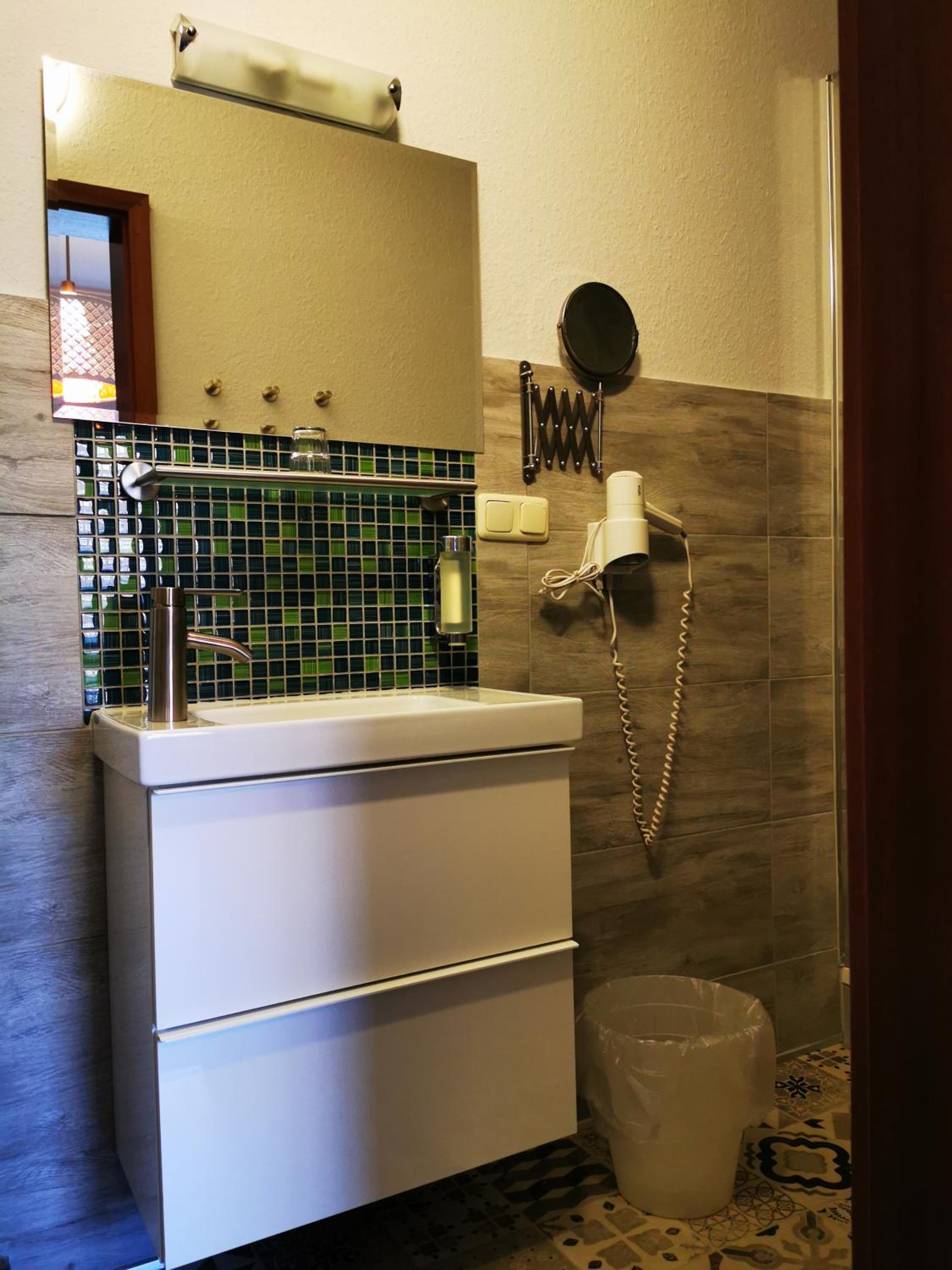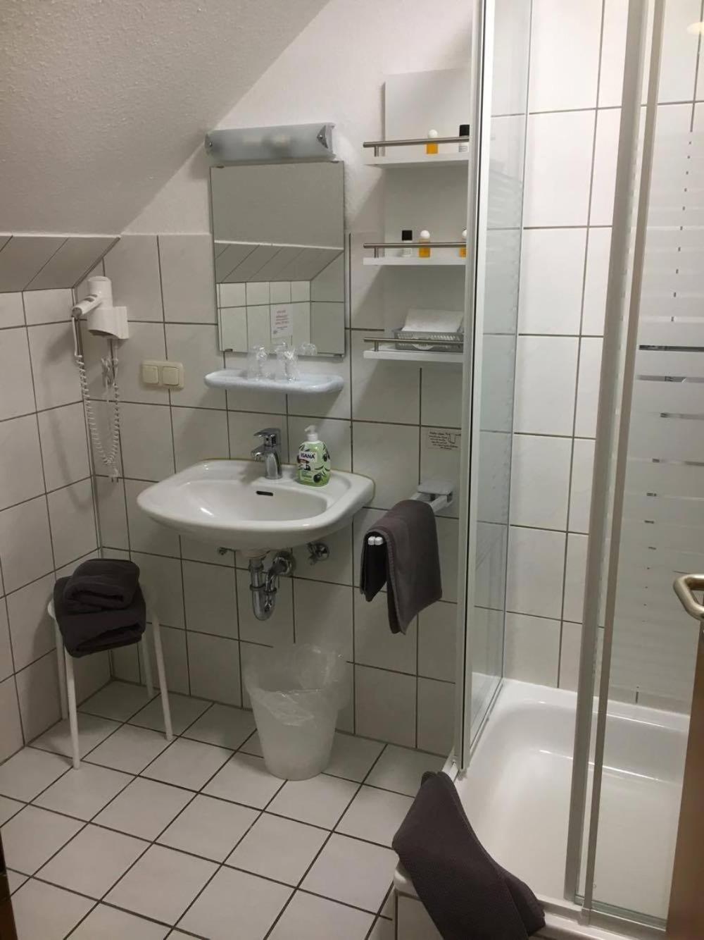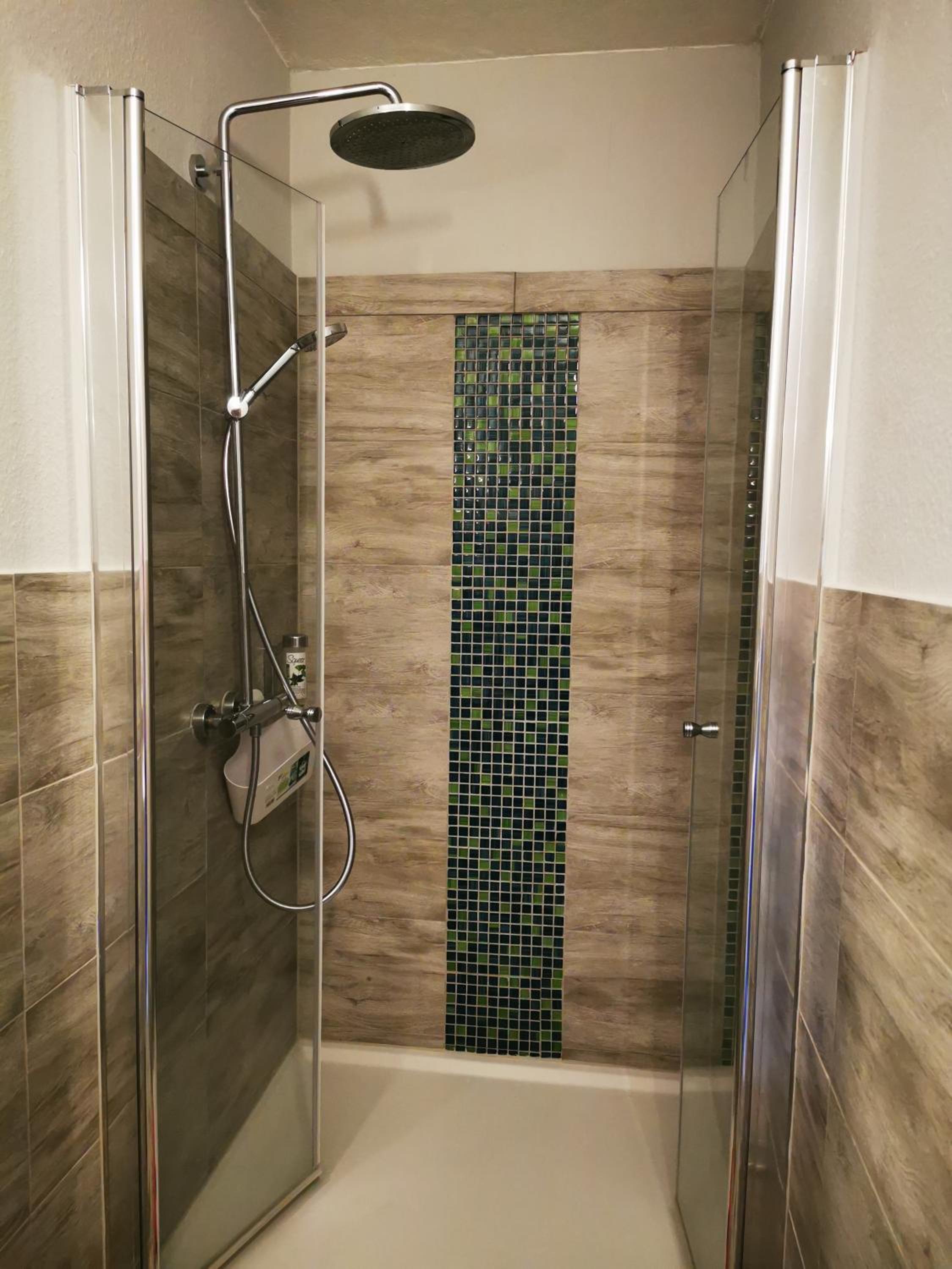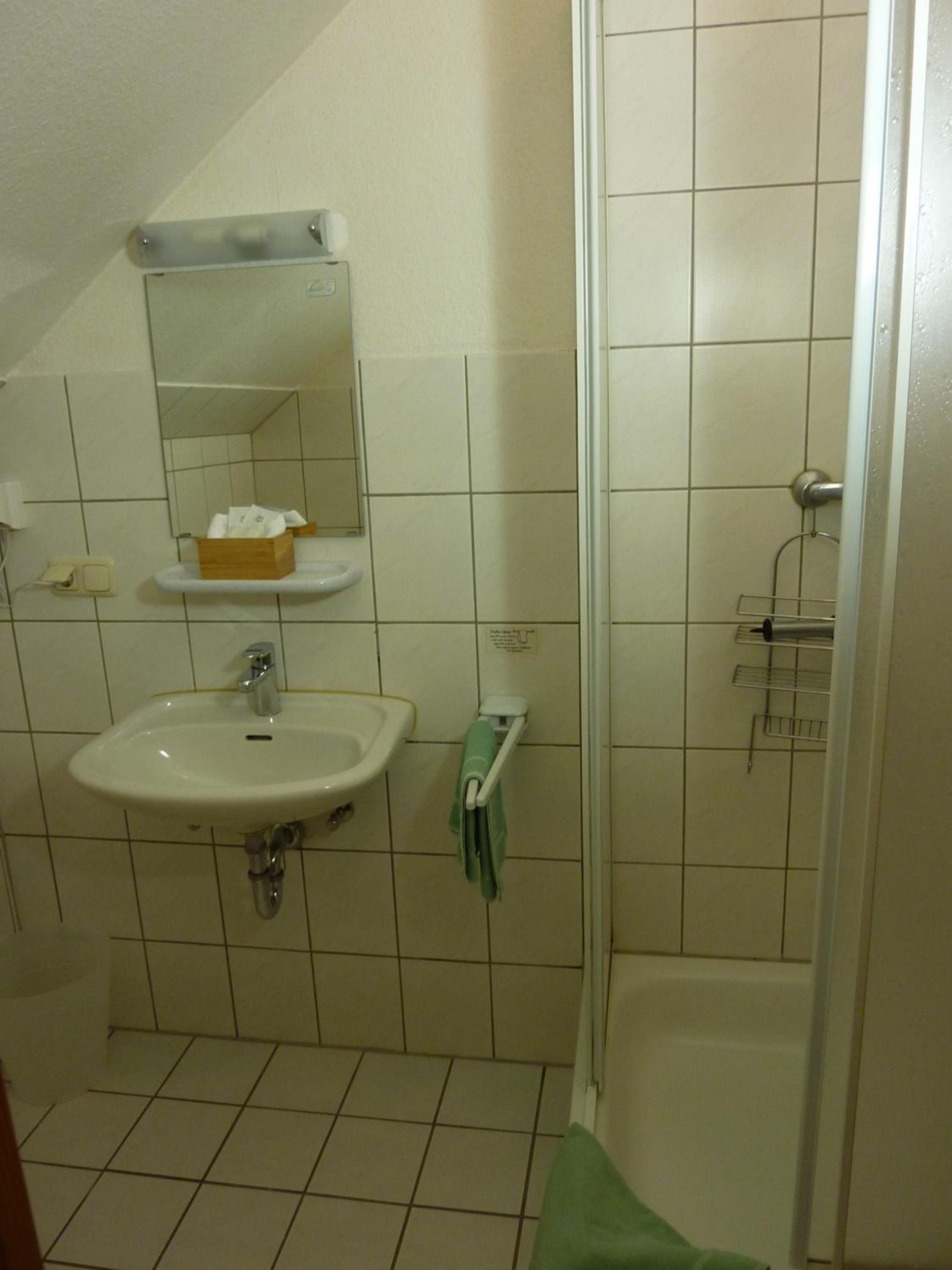 Die Dusche, leider konnte man die Türe nicht richtig schließen, sodass man sehr wenig Platz in der dusche hatte.