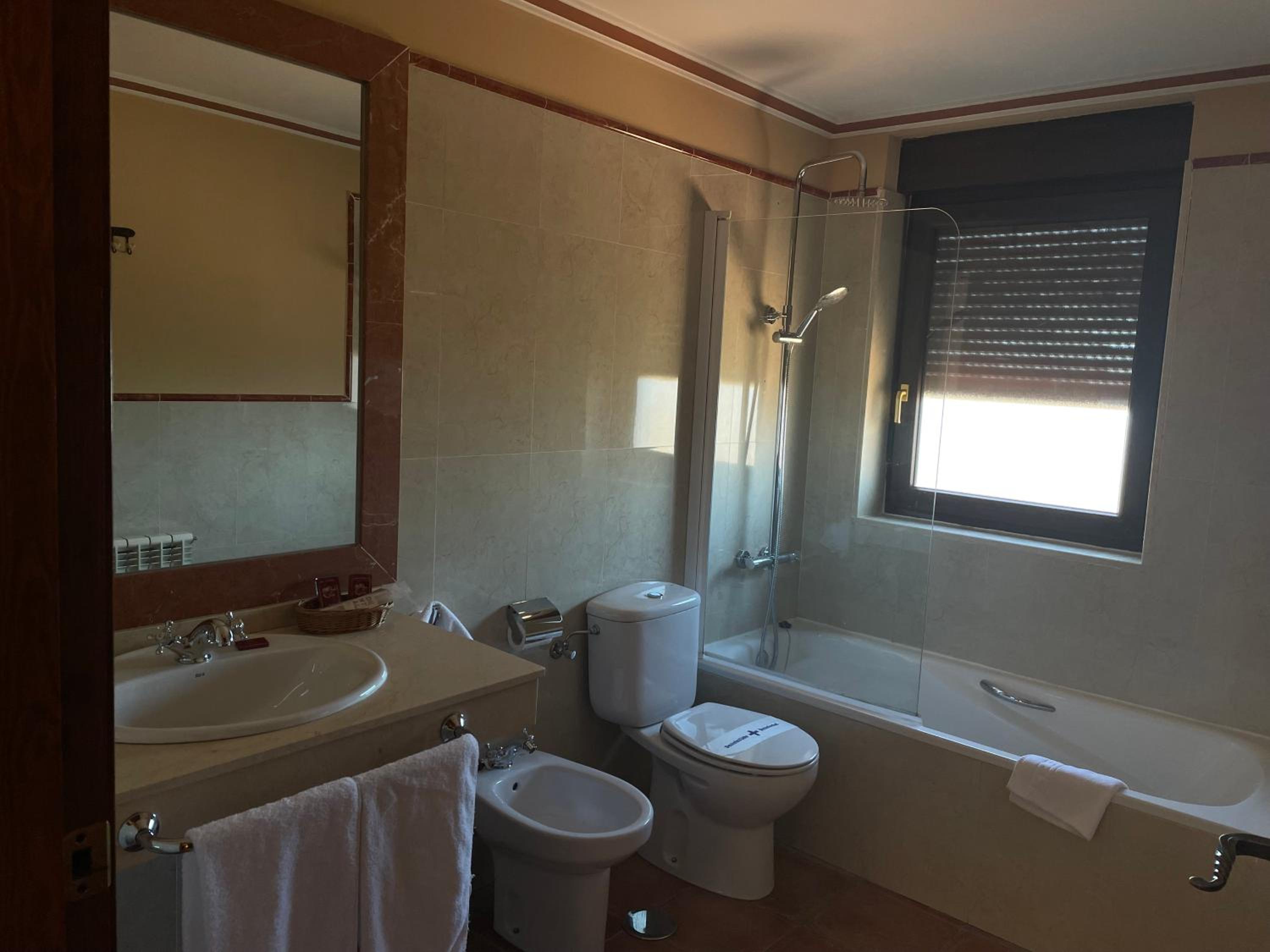 Habitación y baño grande. Camas cómodas y hotel limpio. Calidad/precio muy bueno