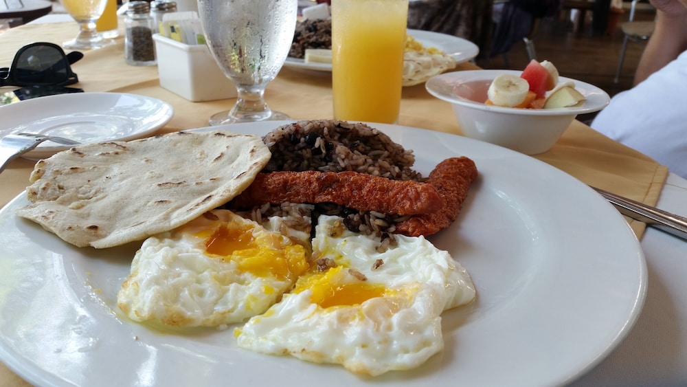 The breakfast included with the room fee was wonderful. Can't get a better location as it is right on the beach. (That means you hear the ocean waves all night and the noise from the bars adjoining the property). I felt the fee of $120 Canadian for the night was high for the condition of the room.... but in hindsight I was paying for location.