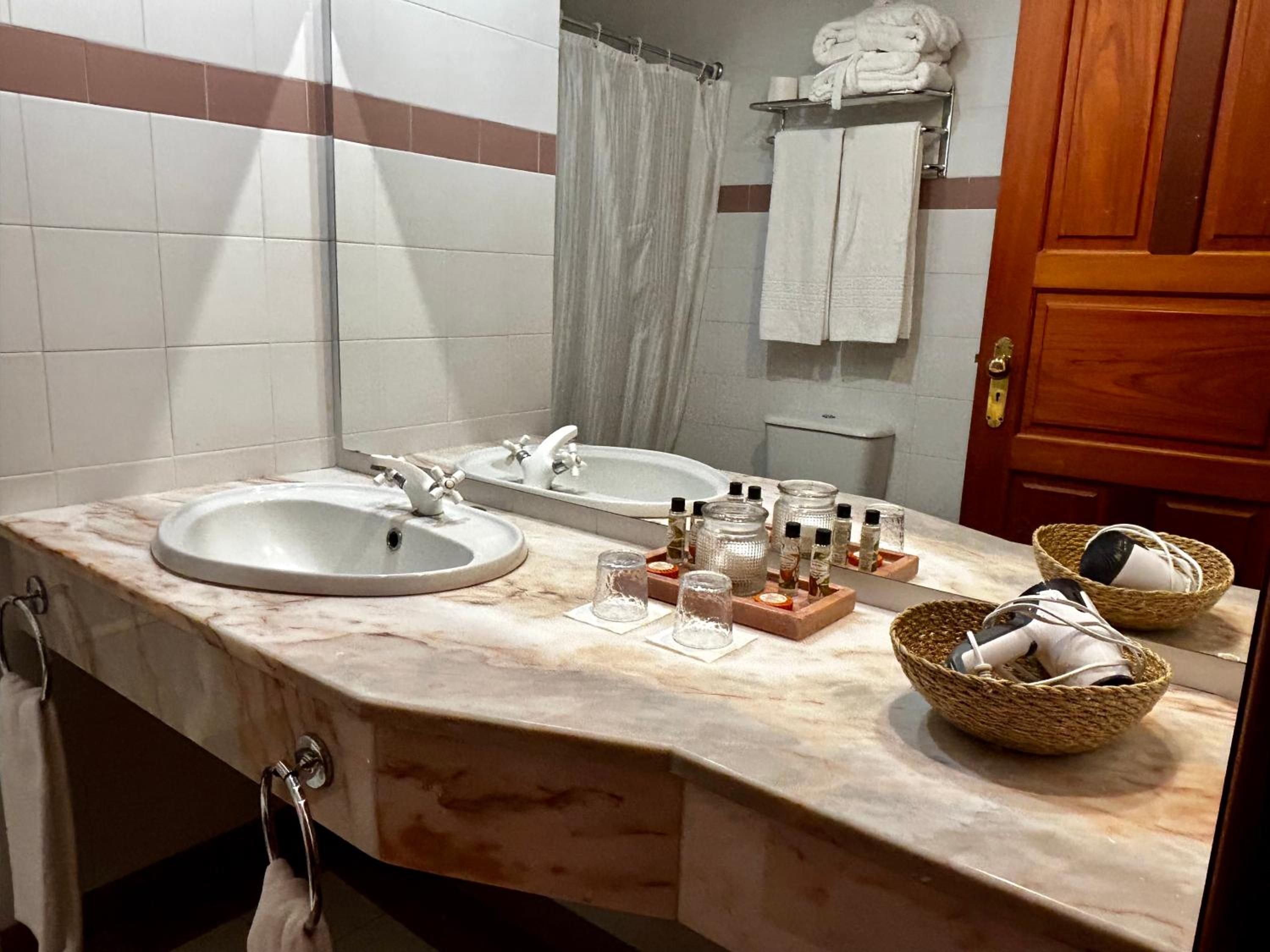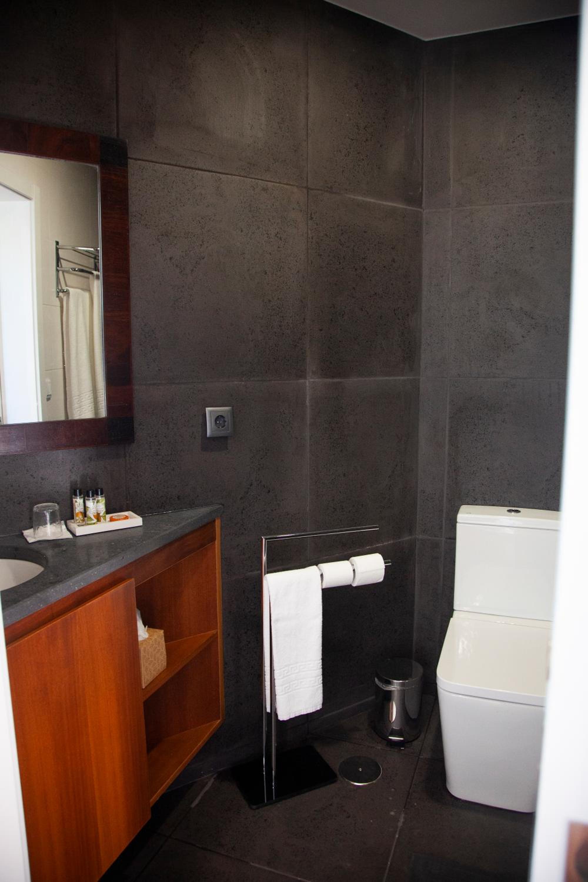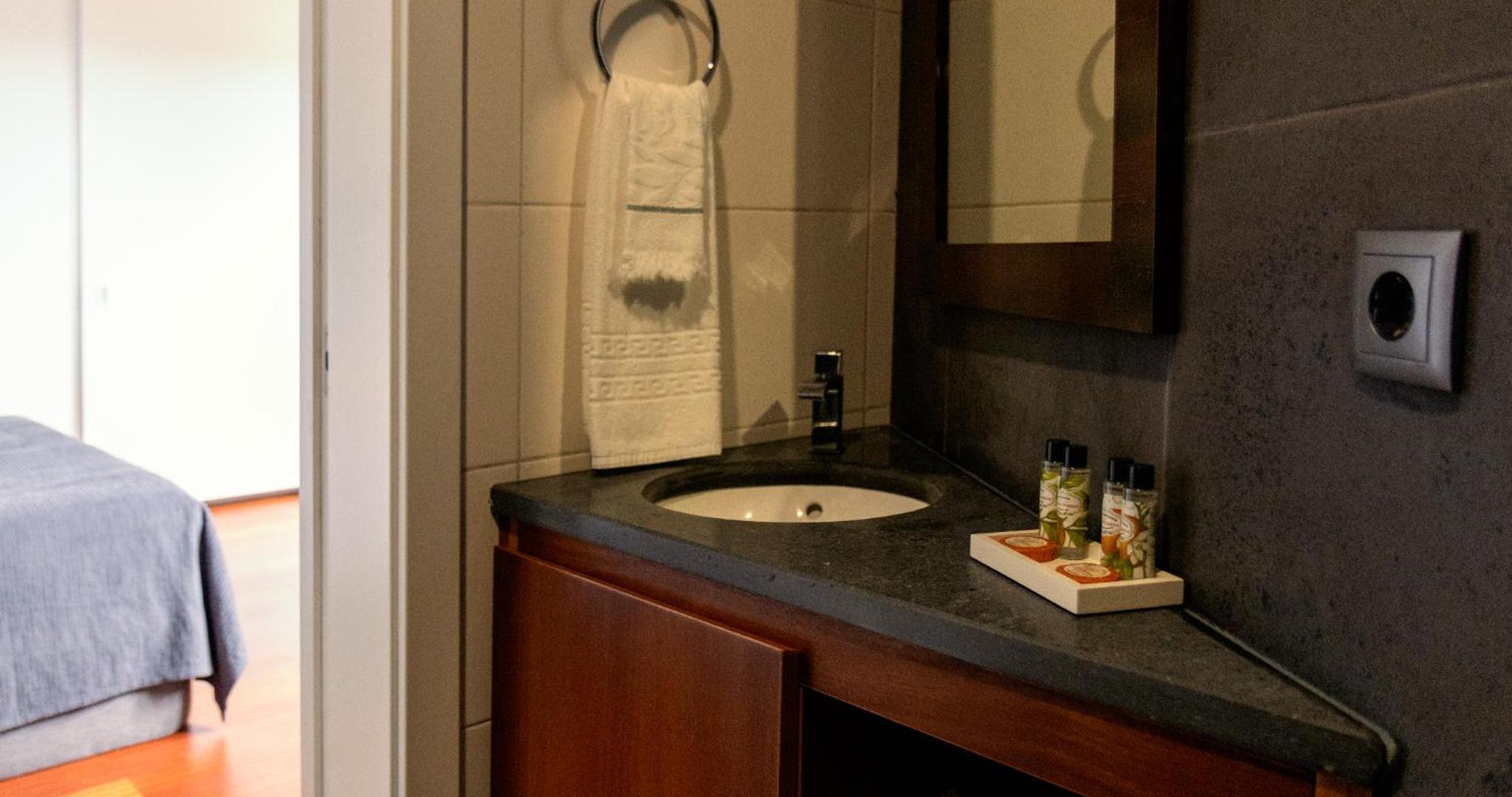 Wir hatten ein Studio mit Küche sowie ein Zimmer. Das Studio ist modern eingerichtet und großzügig, wir waren sehr komfortabel während unserem 1 wöchigem Aufenthalt. Das Hotelzimmer war auch großzügig ausgestaltet, insbesondere das Bad. Es ist jedoch ringhörig, das heißt, man hört die Nachbarn, wenn sie zur Türe reinkommen oder gehen. Überall hat es Terrassen, die zum gemütlichen Sein einladen. Das Personal ist außergewöhnlich nett und hilfreich. Wir würden wiederkommen, bei einer nächsten Terceira Reise!