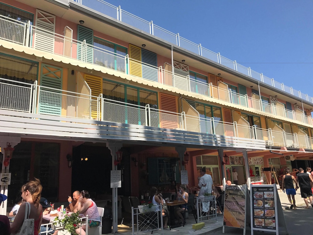 Vi betalte ca 3000 NOK for en uke, så vi forventet ikke så alt for mye. Rommene er relativt nyoppussede, og beliggenheten er fantastisk. Kort vei til stranden, koselige spisesteder og barer rett i strandpromenaden. (Et stykke til partygaten flower street, men det var vi glade for uansett.)