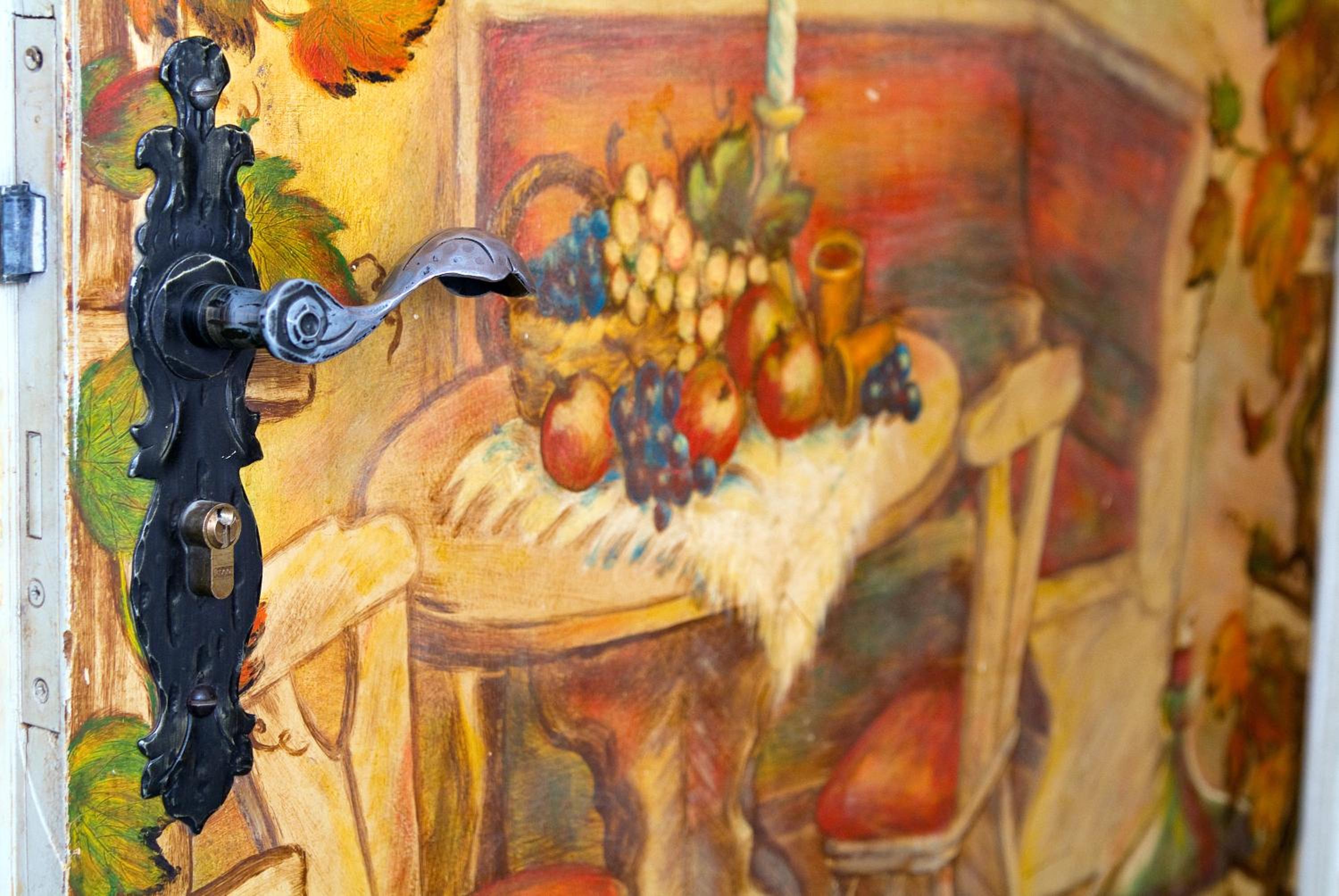 Experience a cozy stay in rooms adorned with wooden furnishings and unique artworks, equipped with modern amenities like cable TV and free Wi-Fi.