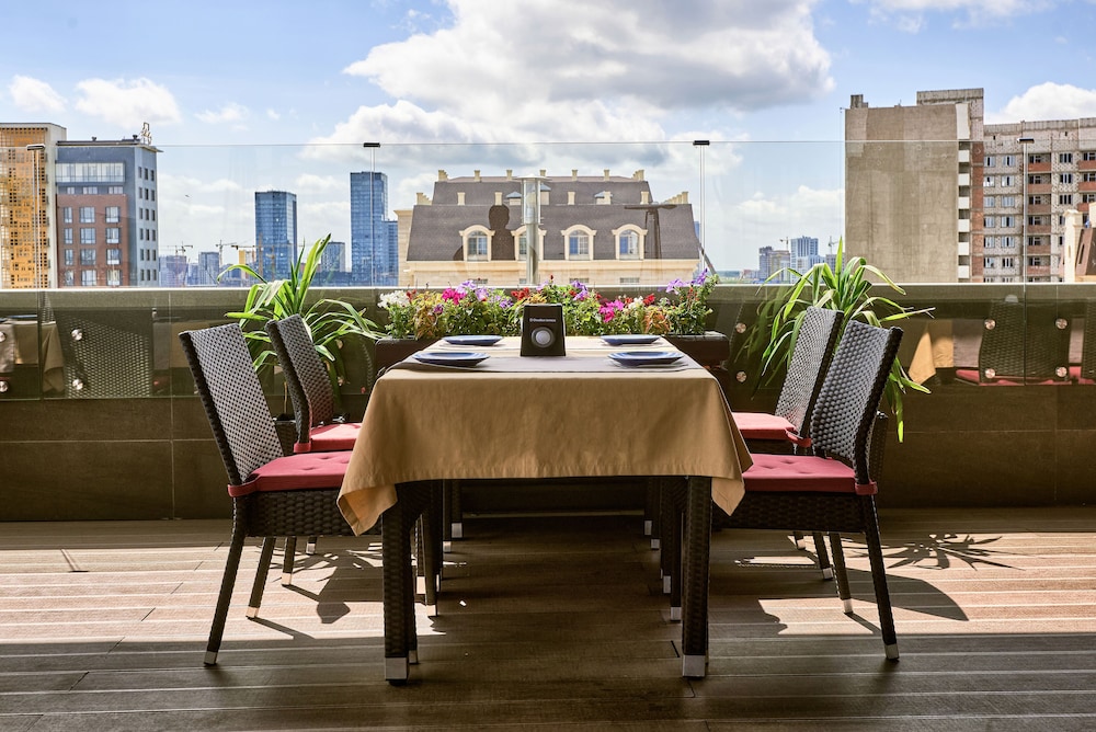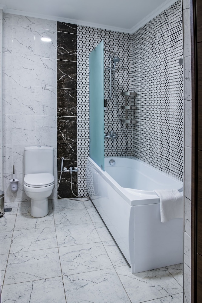 location was not too far from Khan Shatyr in Astana. my studio unit was very spacious and had a well equipped kitchen. bathroom has bidet. breakfast spread was limited but the croissants were very delicious - buttery and flaky. the Cloud Bar where the breakfast is has a nice view.