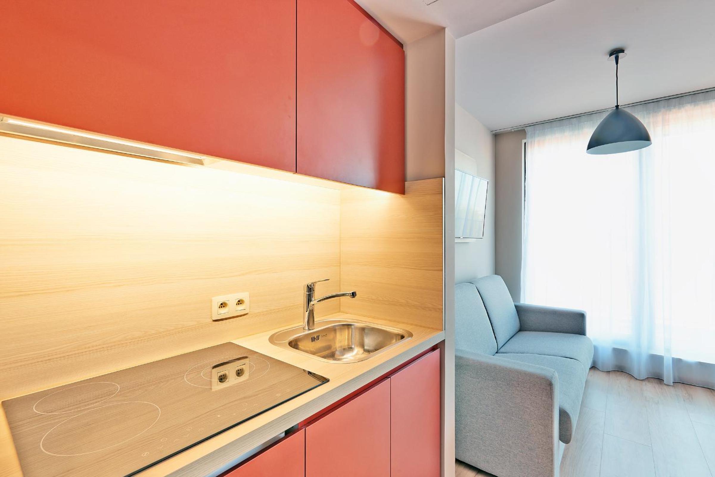 Our apartments are move-in ready with a kitchenette and dishware. Upon your arrival, the bed is made, and towels are provided. No need to clean upon departure, as housekeeping is included.