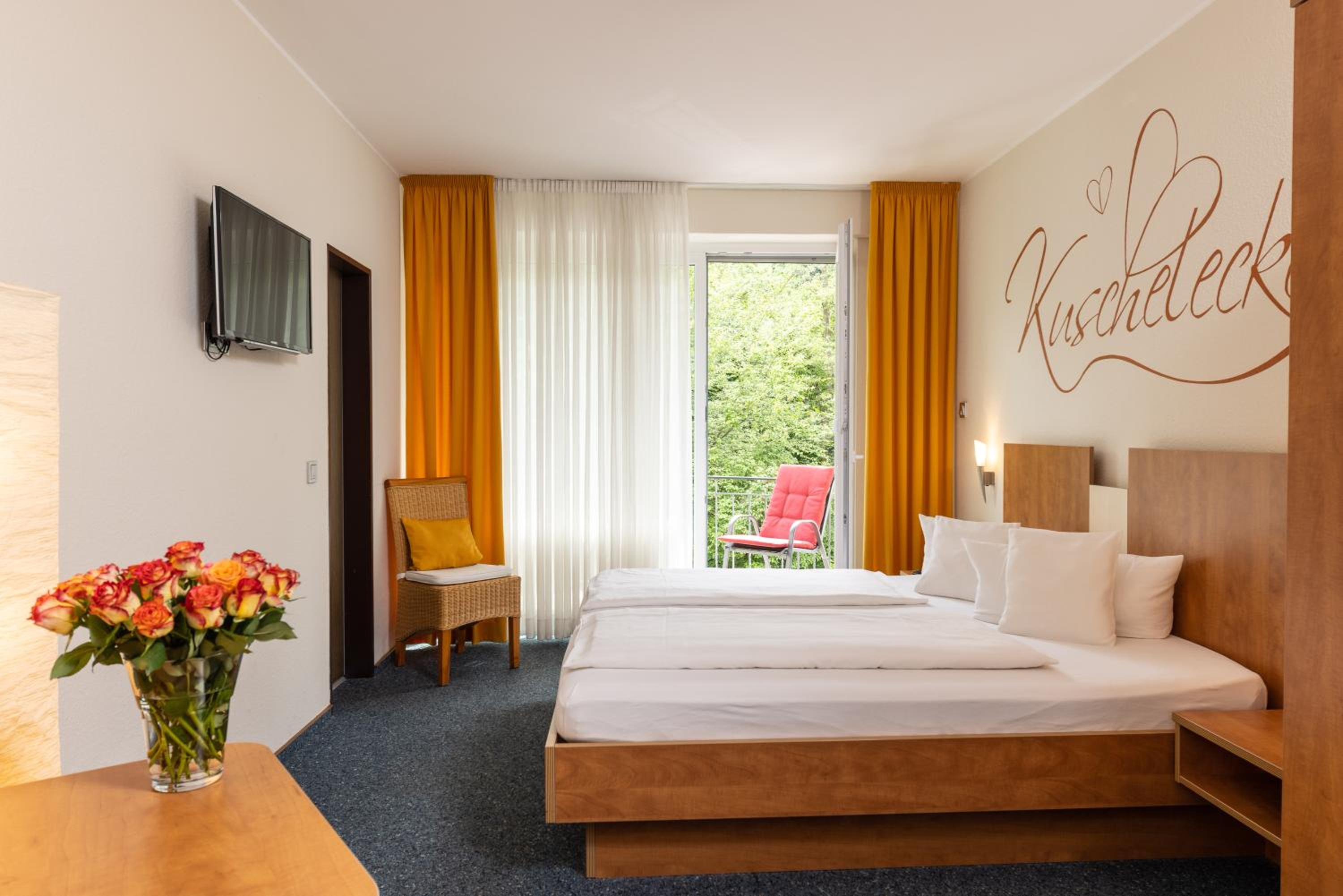 Stayed 2 nights during an ancestry hunt in nearby Siegen area. The hosts Jens and Andrea were gracious hosts who try to accommodate every request. The rooms are clean and spacious, many with balconies. The breakfast was wonderful and set up attractively and comfortably. It is a small town but it hosts a wonderful beer garden within walking distance from the hotel, recommended by our hosts. These very attractive hosts work their butts off to please their guests.