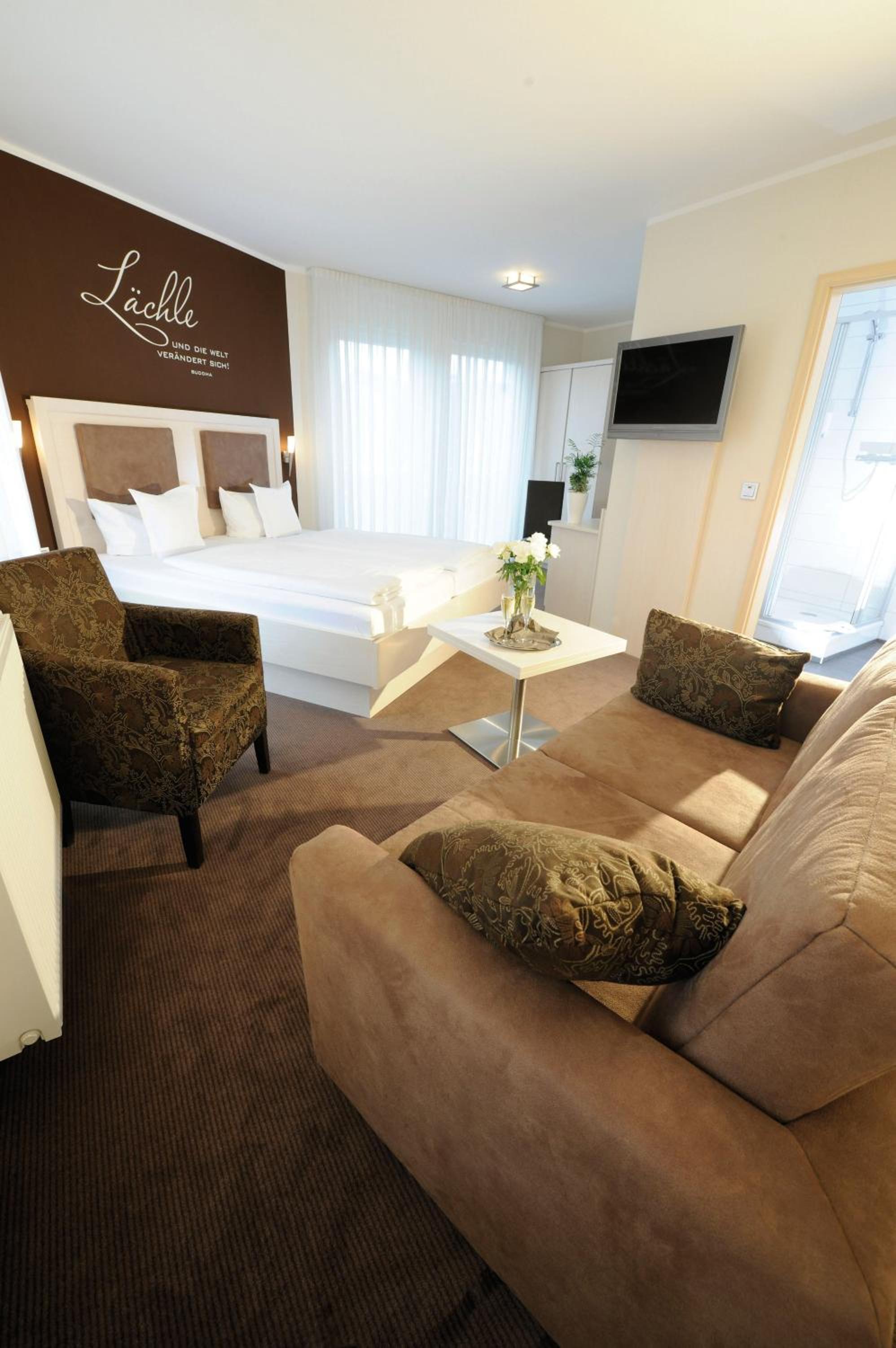 Wir wurden sehr freundlich empfangen. Das Zimmer war klein, aber gemütlich und sehr sauber. Das Bett war bequem, die Matratze fest und rückenfreundlich. Frühstück war reichlich und sehr liebevoll angerichtet. Alles da, was man so erwartet. Getränkekühlschrank im Keller, für den kleinen Durst zwischendurch... reichlich Parkplätze neben dem Hotel...