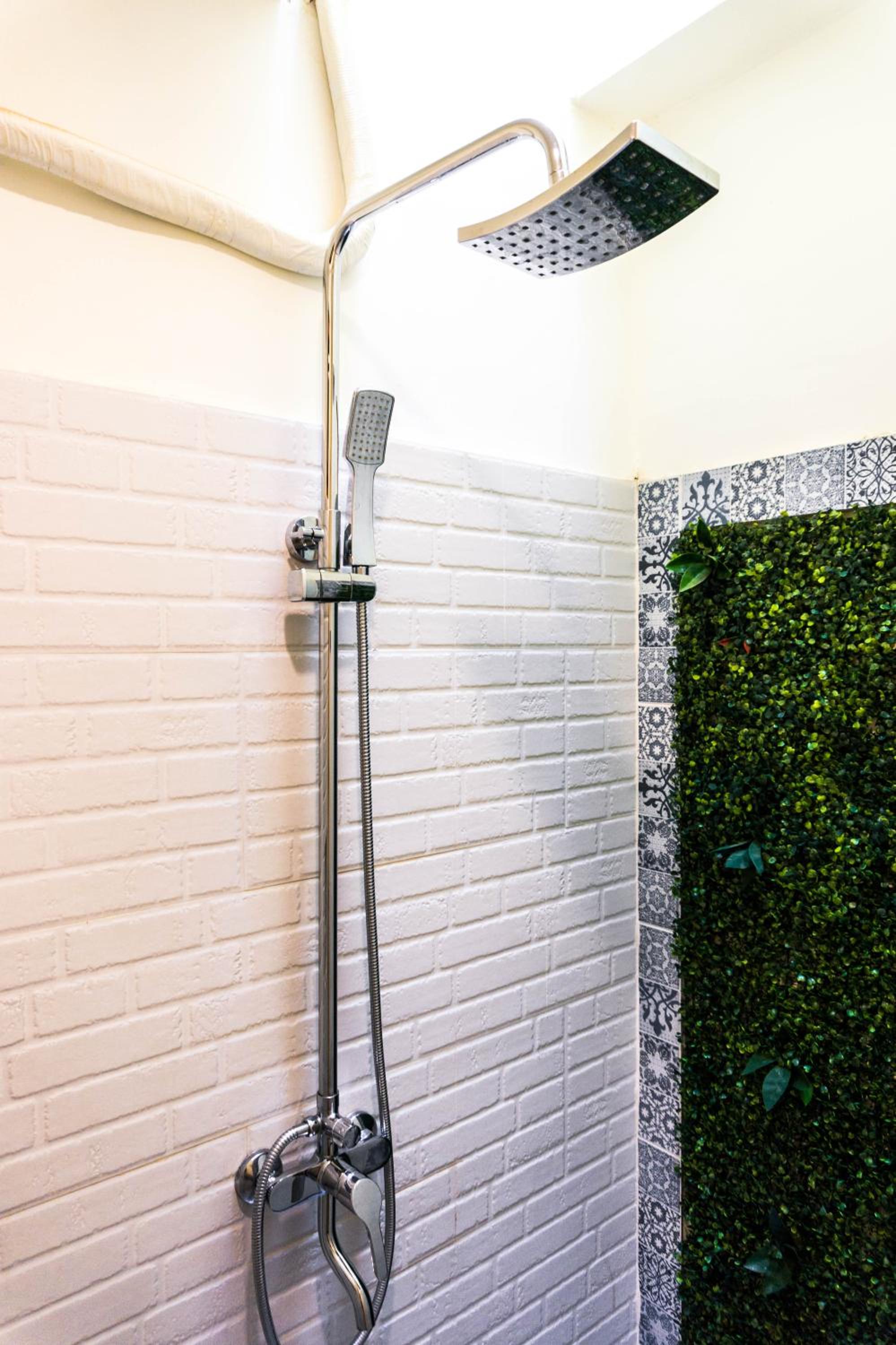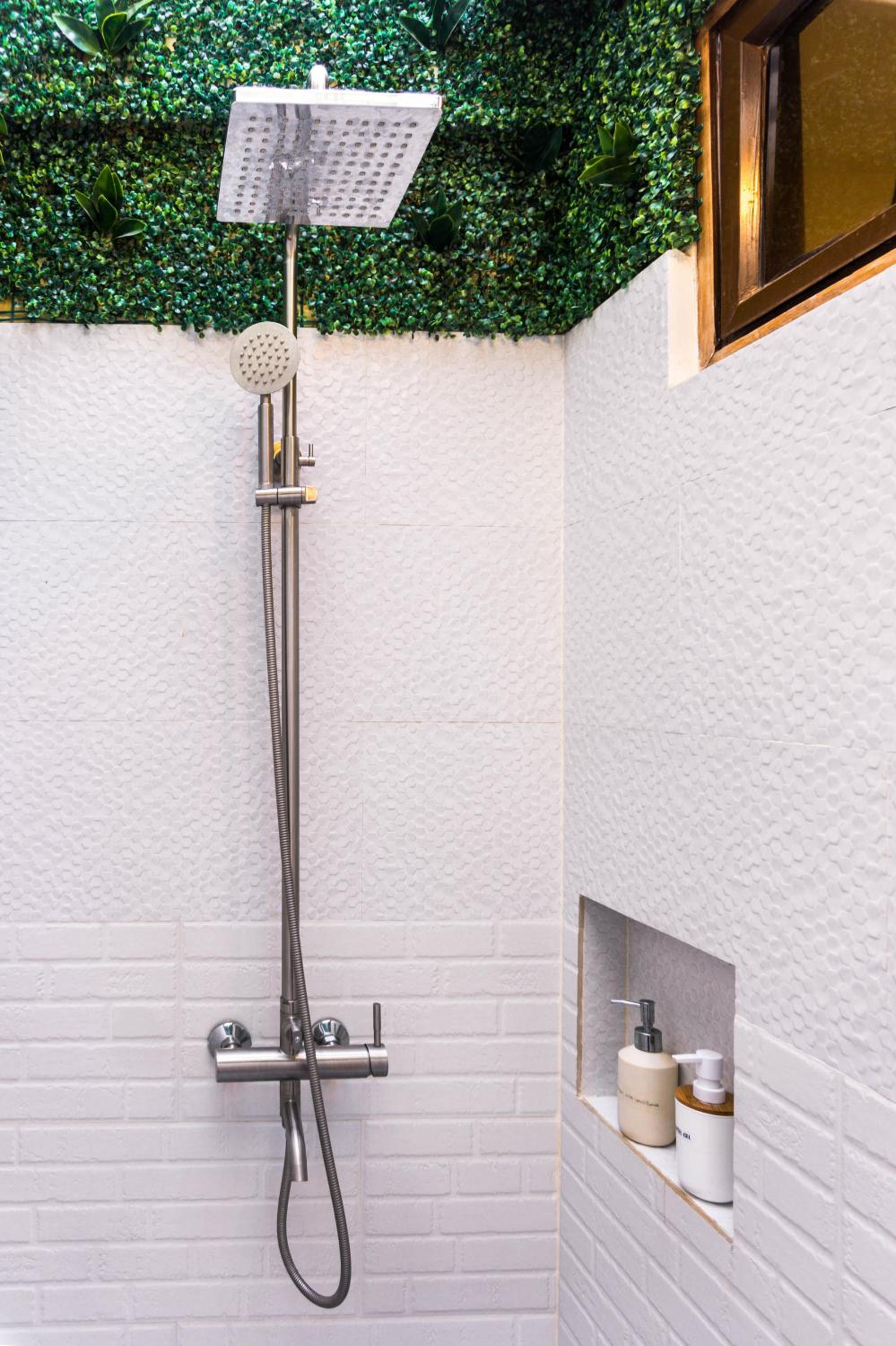 The room with shower had two showers one inside and one outside with an open roof, this was not appealing because the bugs and noise came in.