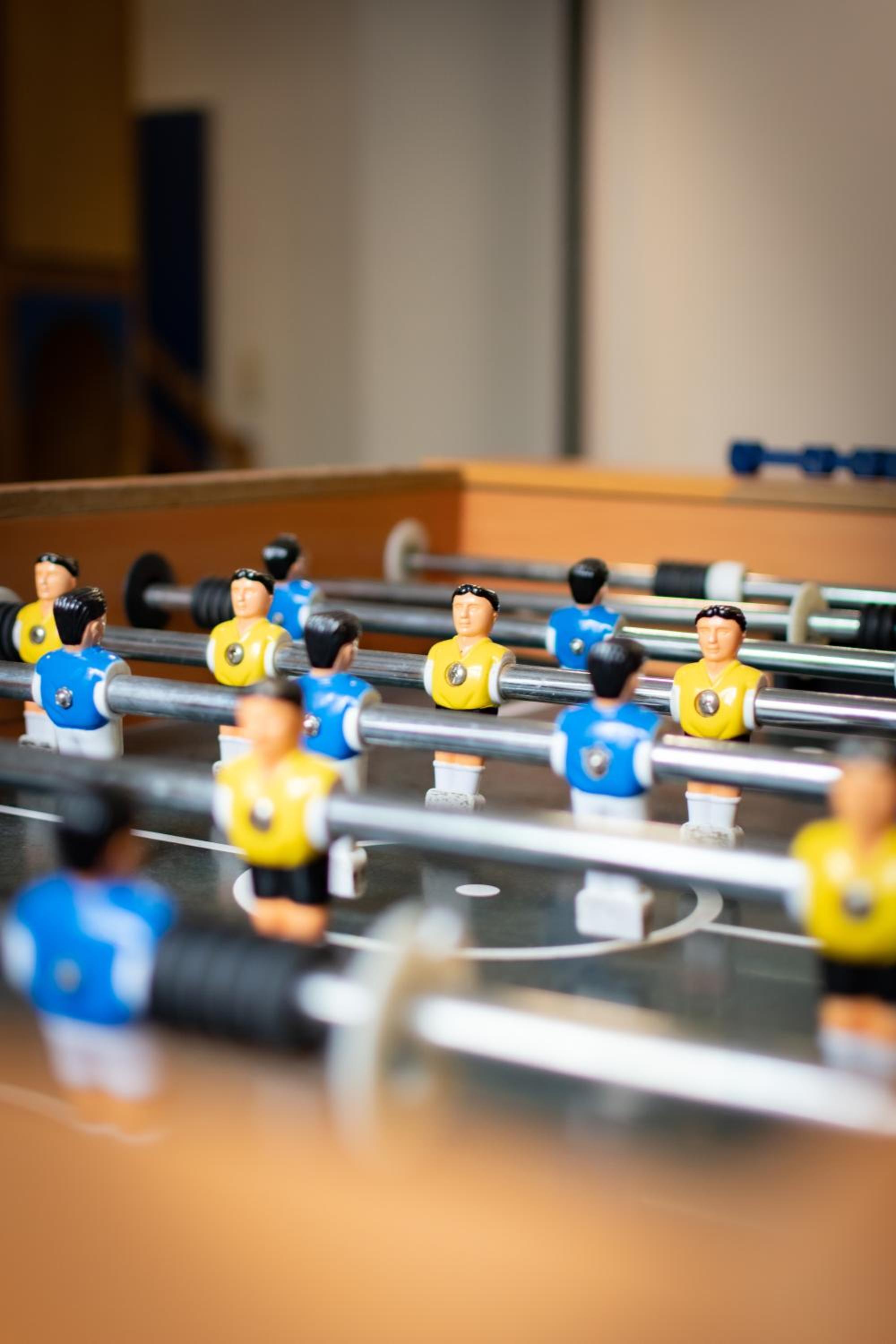 Er is geen echte lounge, maar wel op de begane grond een paar tafeltjes met stoelen bij een drankenautomaat.