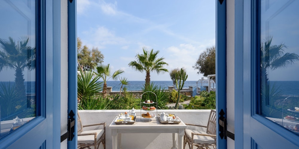 We booked this property by accident. What a wonderful mistake. We were immediately welcomed by the owner, who took our bags and showed us to our room. Within minutes he brought us a couple drinks and a snack. We felt like family. The room was large and comfortable. We had a LOVEtY patio looking out to the beach and sea. Each morning you open your door and the owner will bring you breakfast within minutes. This was by far the best place we stayed in Greece!!!!!!