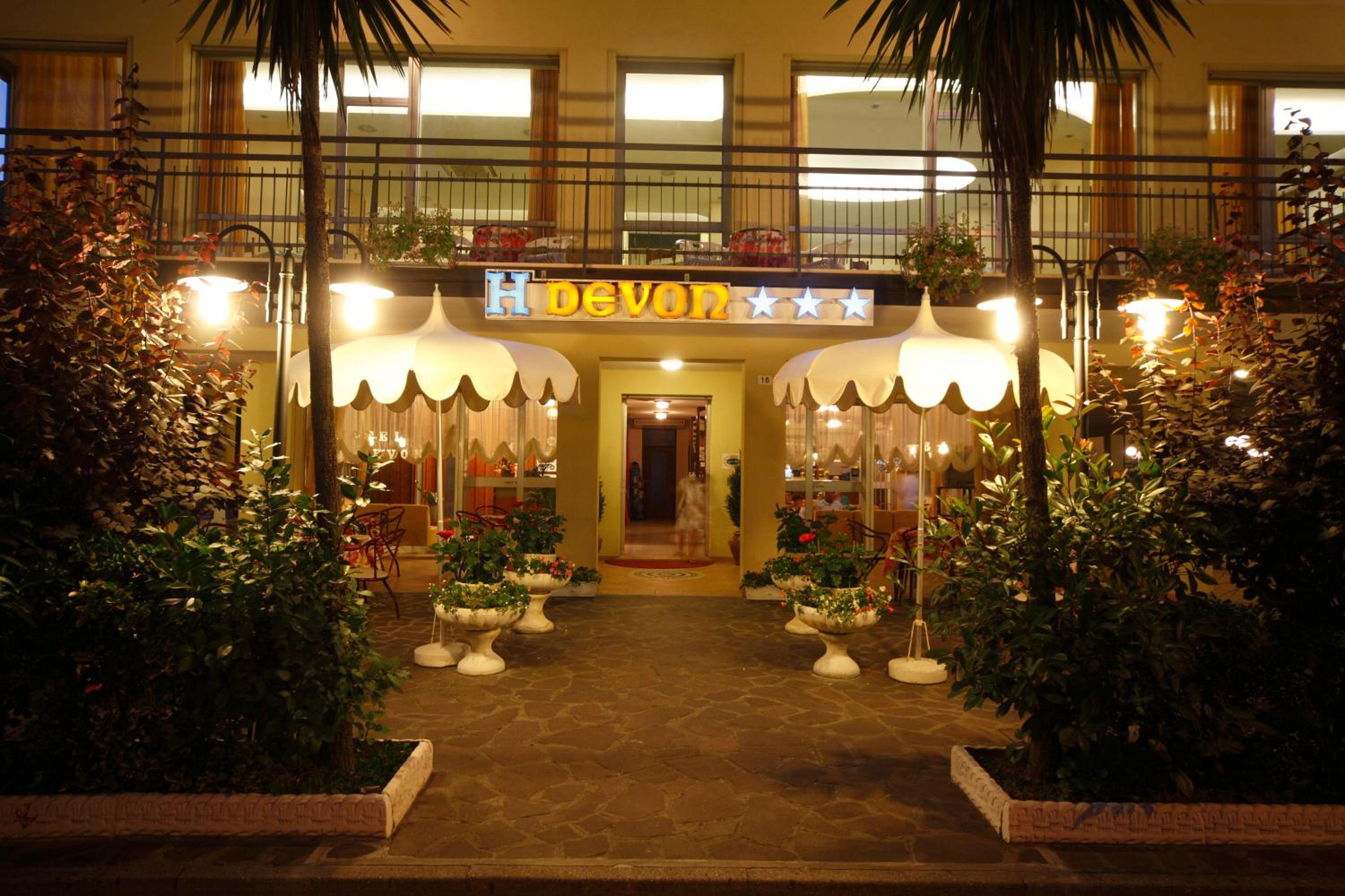 The rooms at Hotel Devon are designed for your comfort, featuring balconies, classic furnishings, and modern amenities. Unwind in the cozy lounge area with a flat-screen TV or enjoy a drink at the bar. The garden area provides a peaceful retreat with tables and chairs for relaxation.