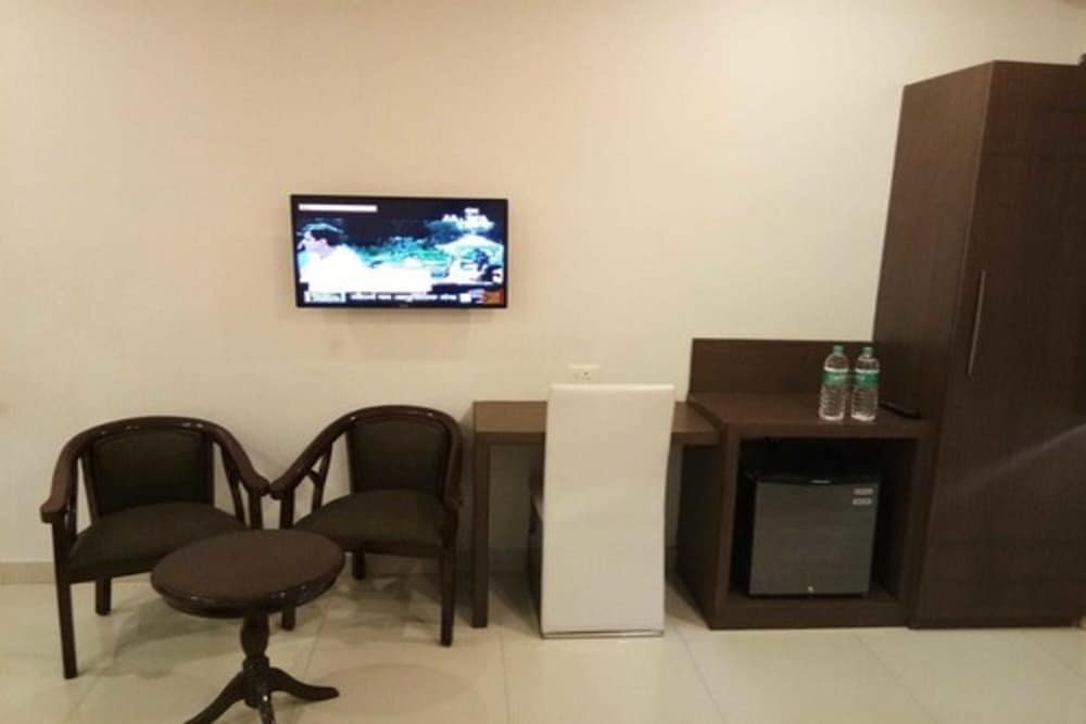 There was a single fan in a quadraple room of four people...two people had sleep without the Fan's wind...one single window AC which does not have a good cooling effect...very difficult to sleep in the heat...room service late..had to call again and again...no dining facilities...had to eat on the bed