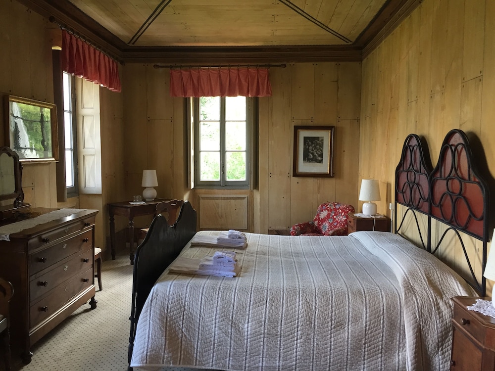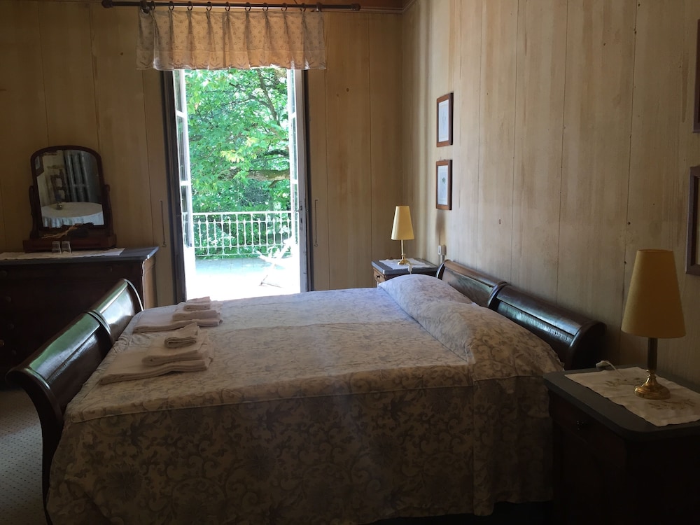 Une belle villa italienne des années 50 dans son jus, maison de famille pleine de charme, chambres anciennes ( mais salles de bain modernes et pratiques), dans la montagne au milieu d’un beau parc avec les vaches qui paissent tranquillement et au frais, loin de la foule et de la chaleur des bords du lac de Côme. Dîner dans une véranda avec bougies et nappes blanches, fleurs et musique rétro en fond. Vous êtes transportés dans l’Italie d’autrefois, un charme extraordinaire auquel participe l’etat un peu désuet de l’ensemble.