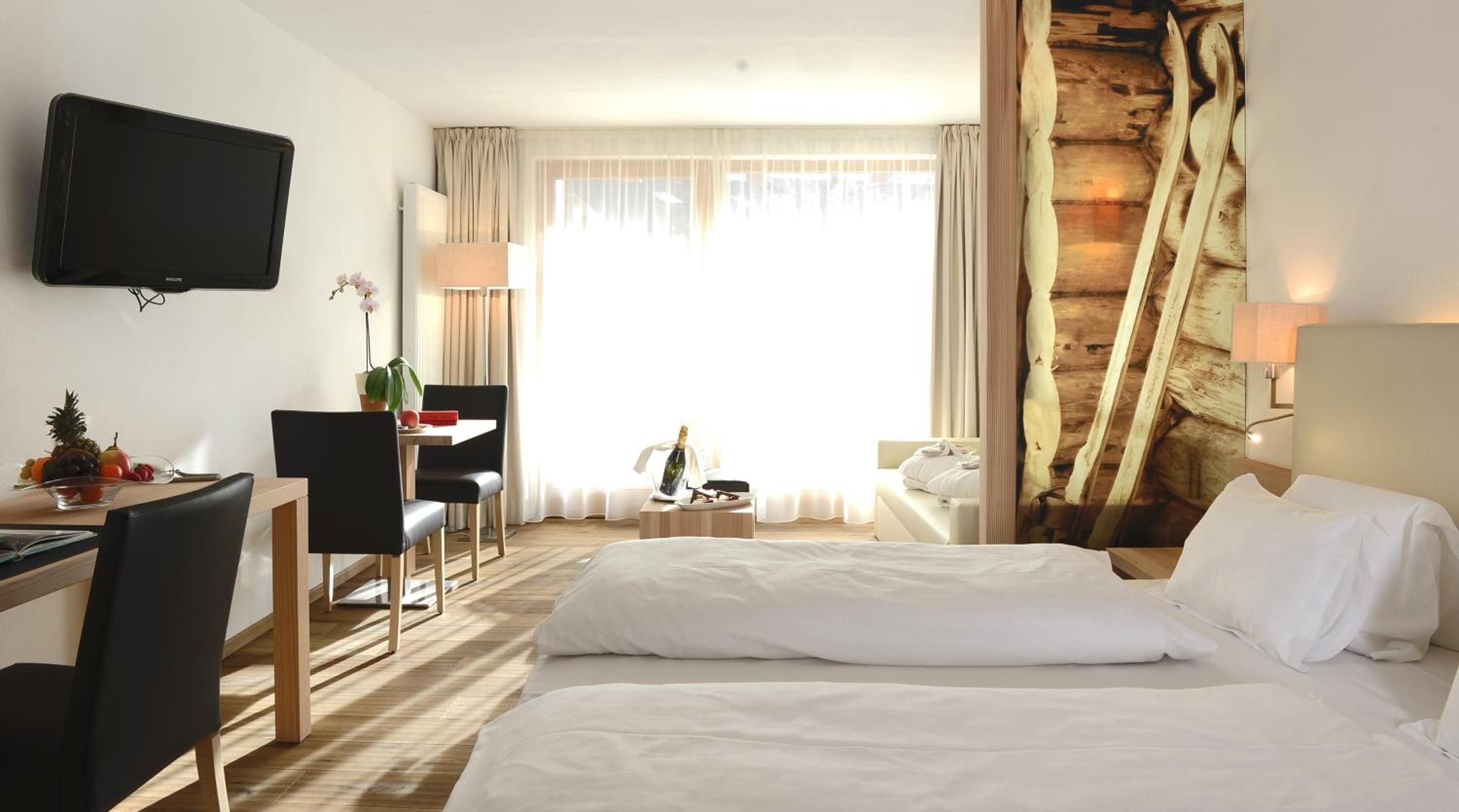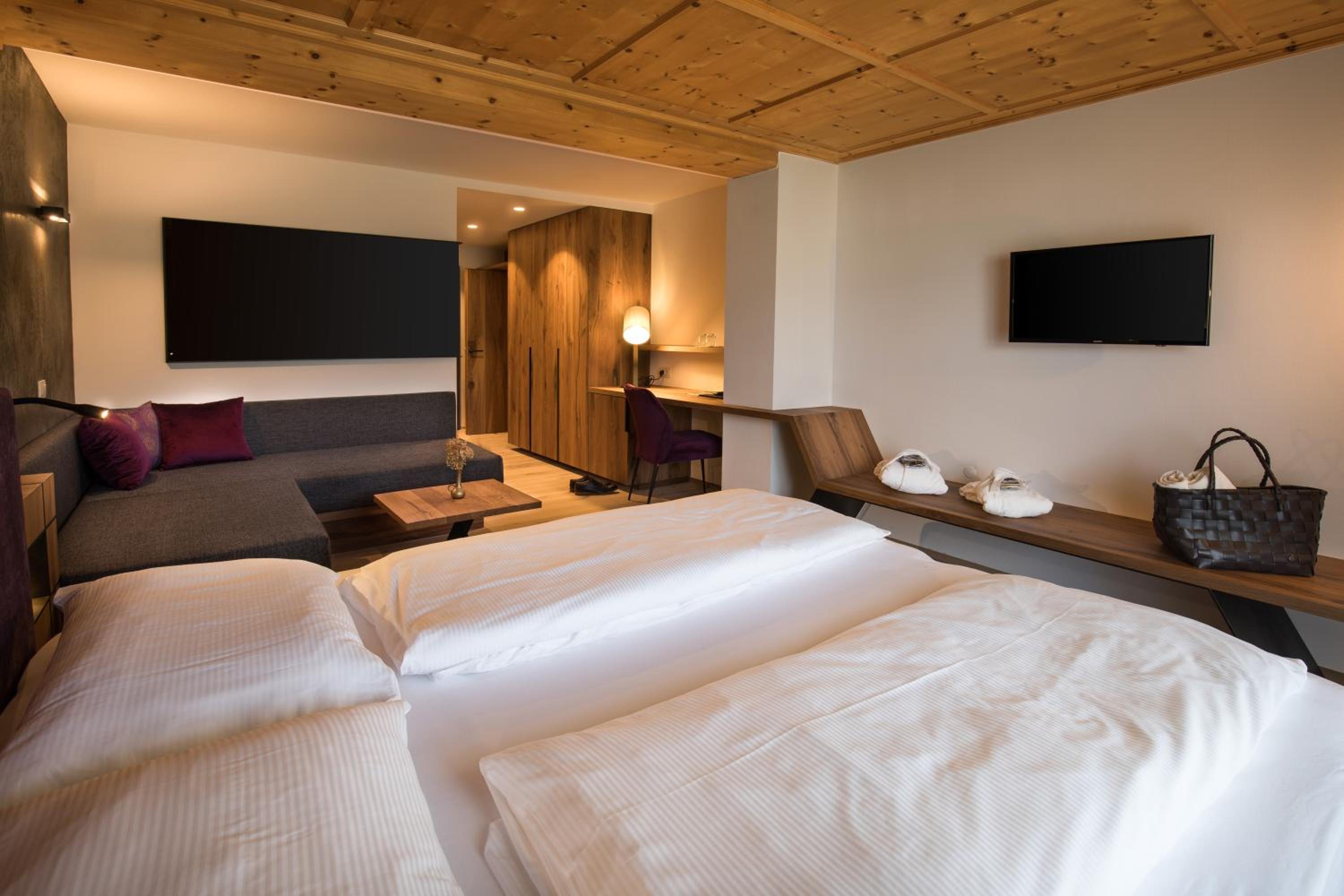Our spacious rooms feature breathtaking mountain views and private balconies, allowing you to start each day immersed in the beauty of the Dolomites.
