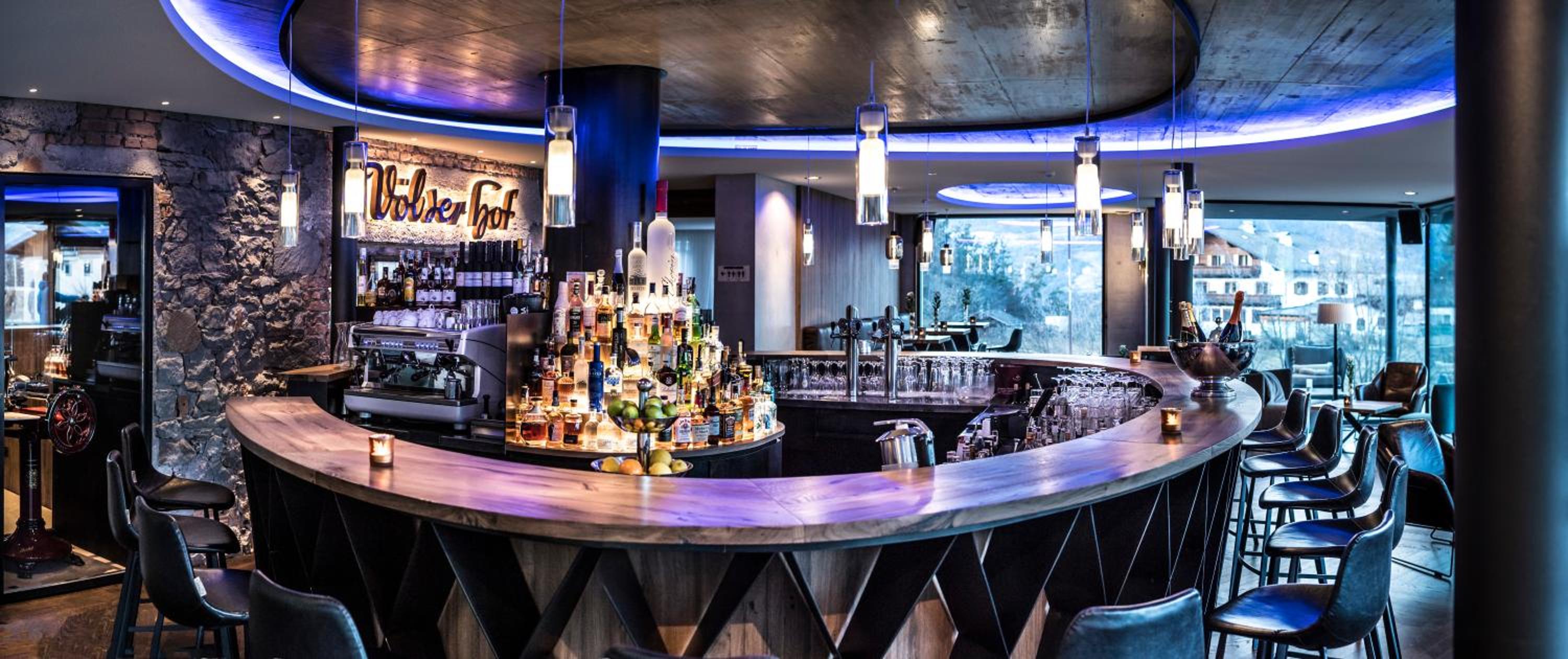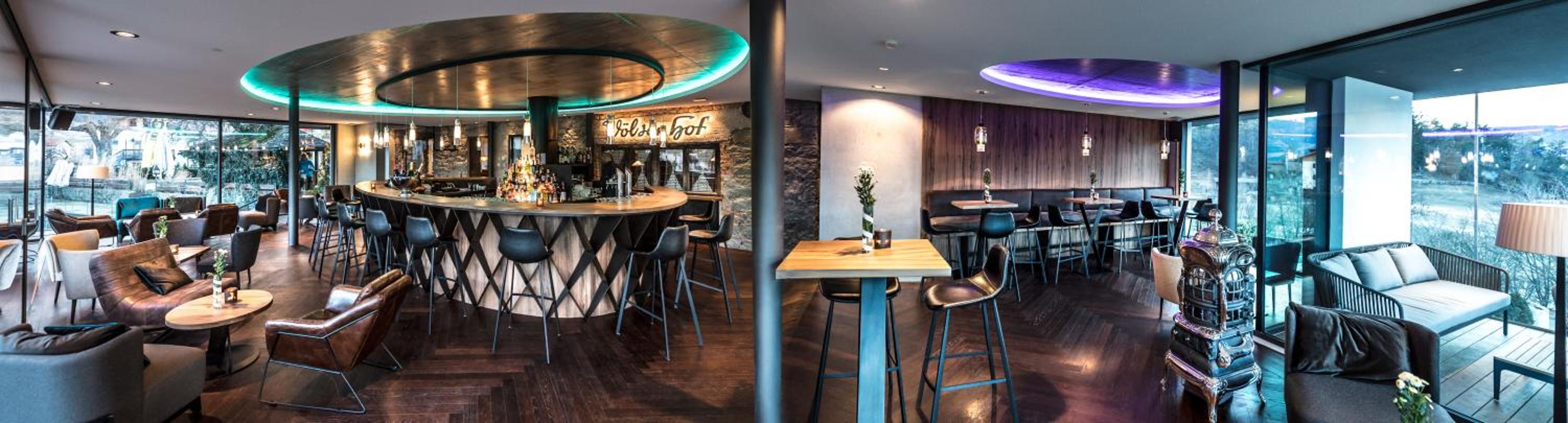 Großartig gestalteter Wellnessbereich. Schönes Frühstücksbuffett. Nette Bar im Hotel.