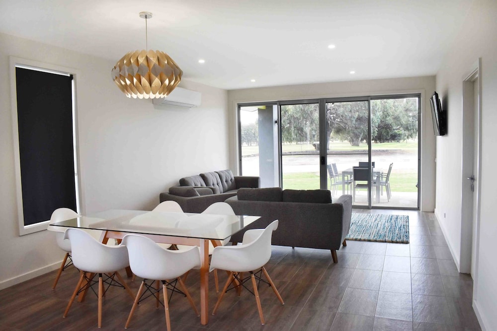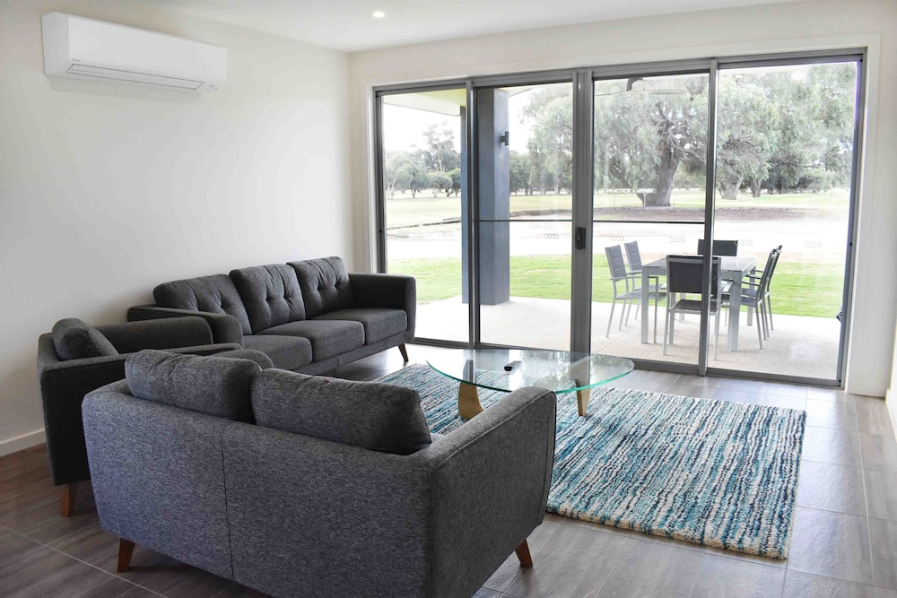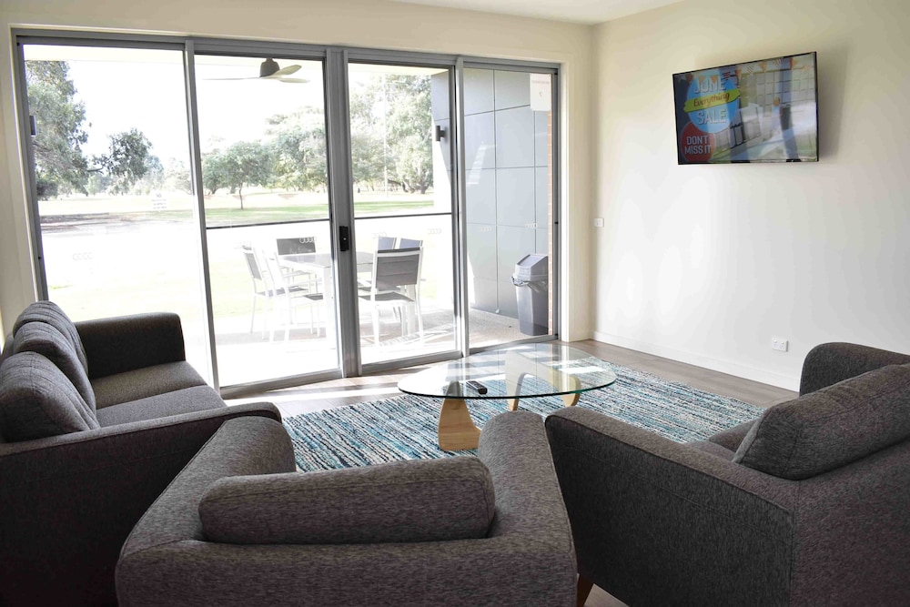 What a wonderful place to stay . You dont need to be a golfer to appreciate the serenity living on the course provides. The accommodation was modern, clean and tastefully decorated. Beds were comfortable and two bathrooms were clean. Yes two bathrooms. A fantastic stay. There is a lovely pool on site and we also took advantage of the BBQ area undercover. Great place to stay. Enjoy looking out at the big old trees and the lushness of the greens.