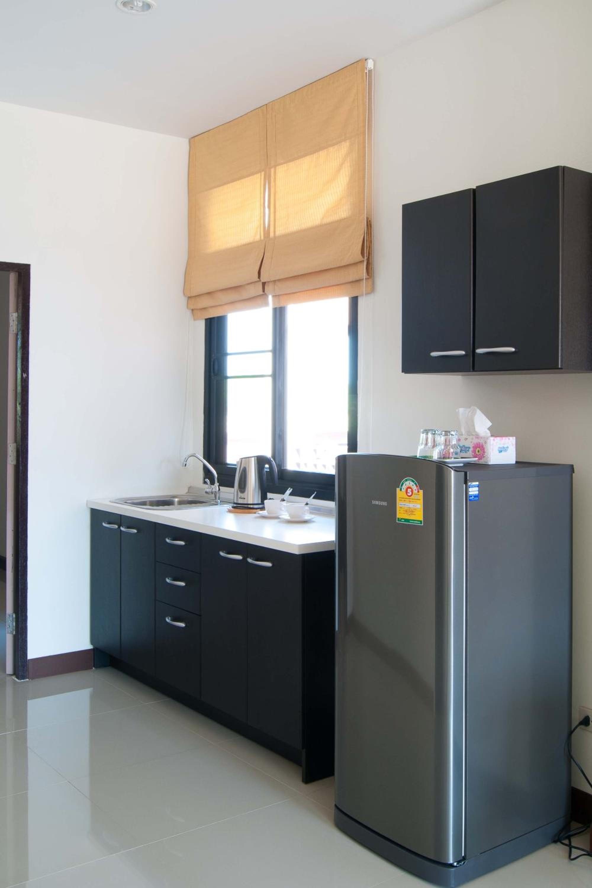 The room was clean, It is older style rooms but for my family was comfortable. The beds were good and linen changed each day. There is a large refridgerator with small top freezer. Aircon was good in both rooms. The pool was clean but not in operation, and the grounds were a bit messy. There is a live band restaurant 30 metres down the road.