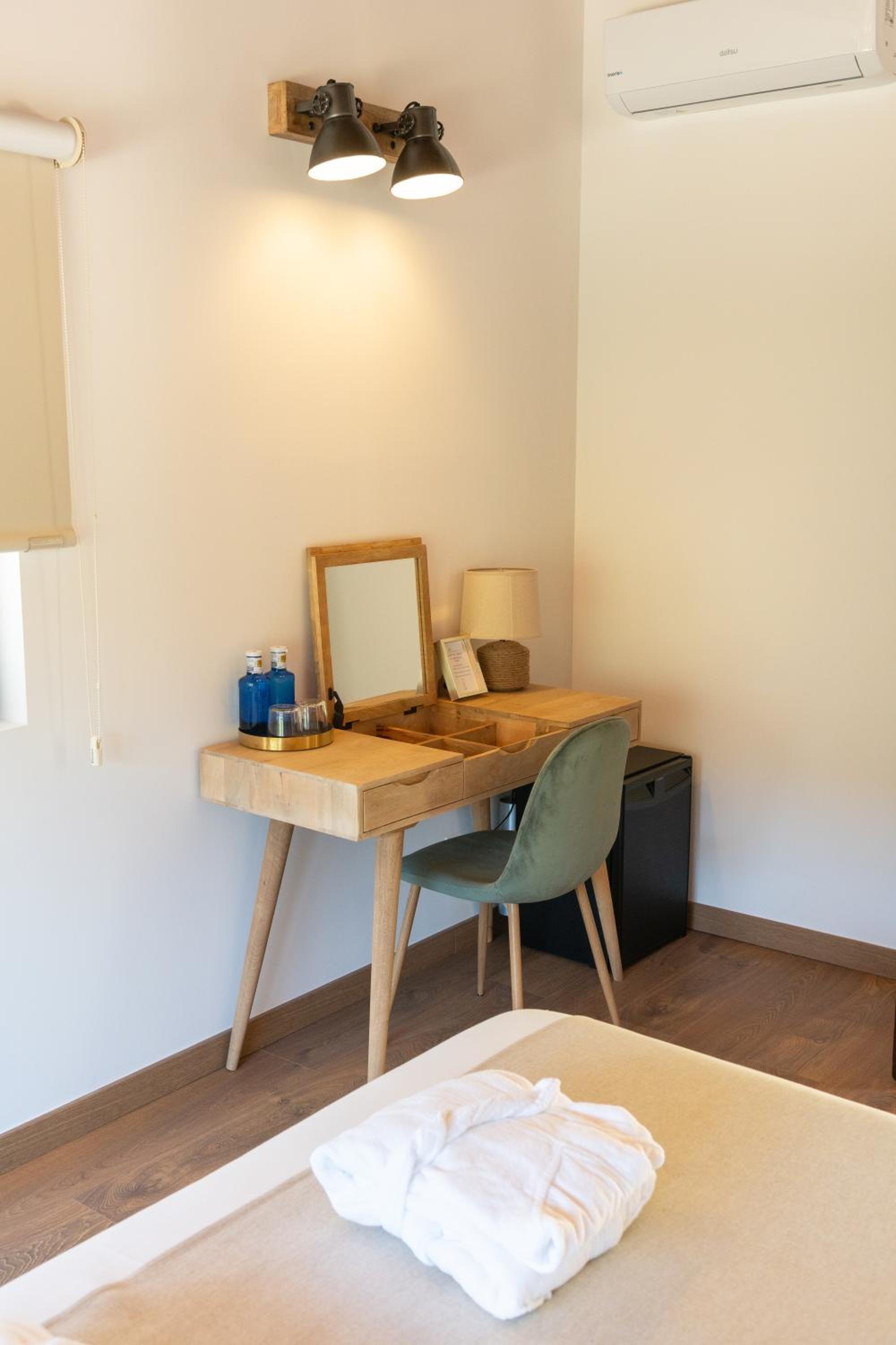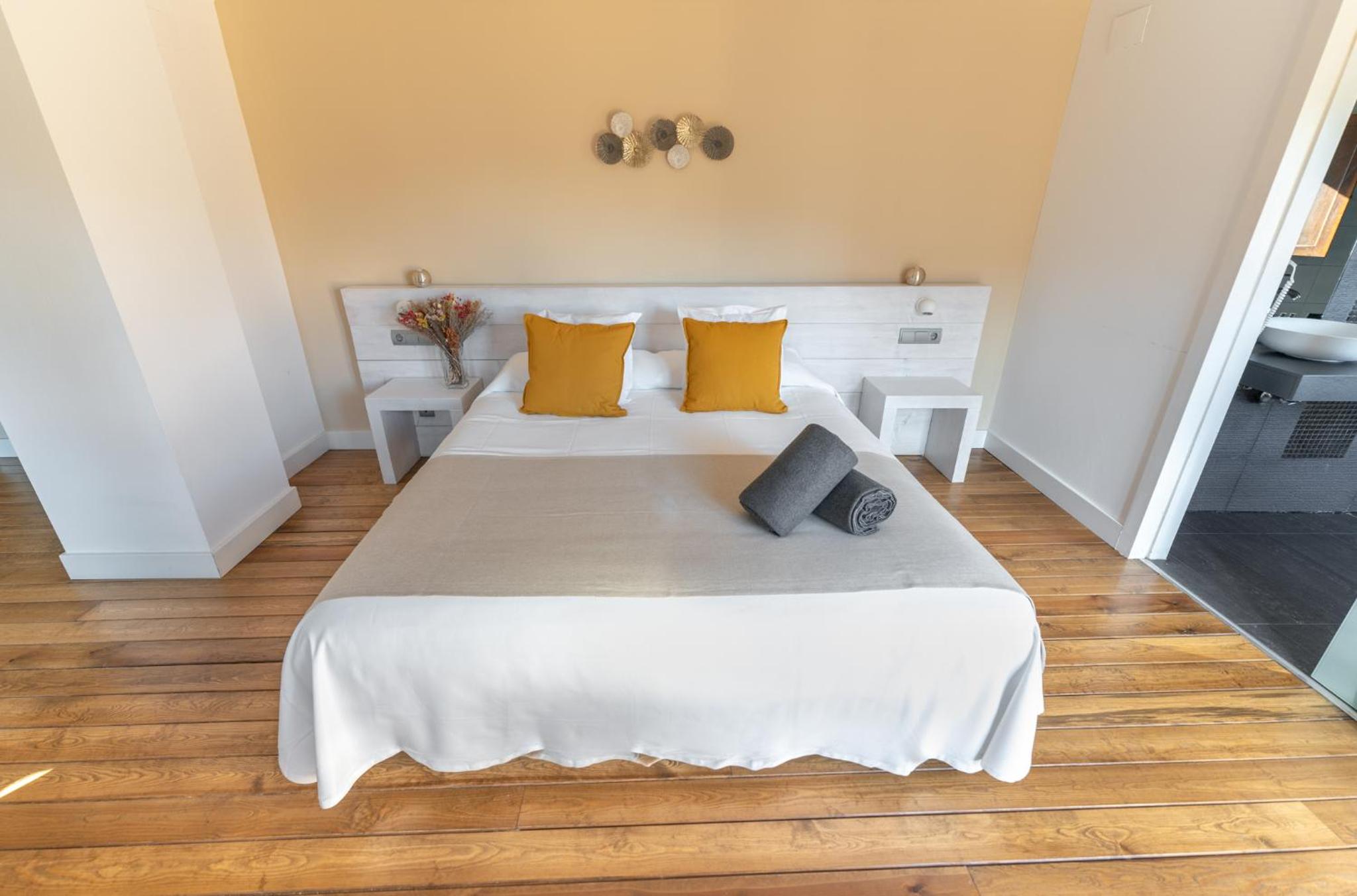 Indulge in our cozy rooms featuring elegant wooden floors and contemporary finishes. Stay comfortable with air conditioning, heating, and entertainment options like a flat-screen TV. The private bathrooms are stocked with complimentary toiletries for your convenience.