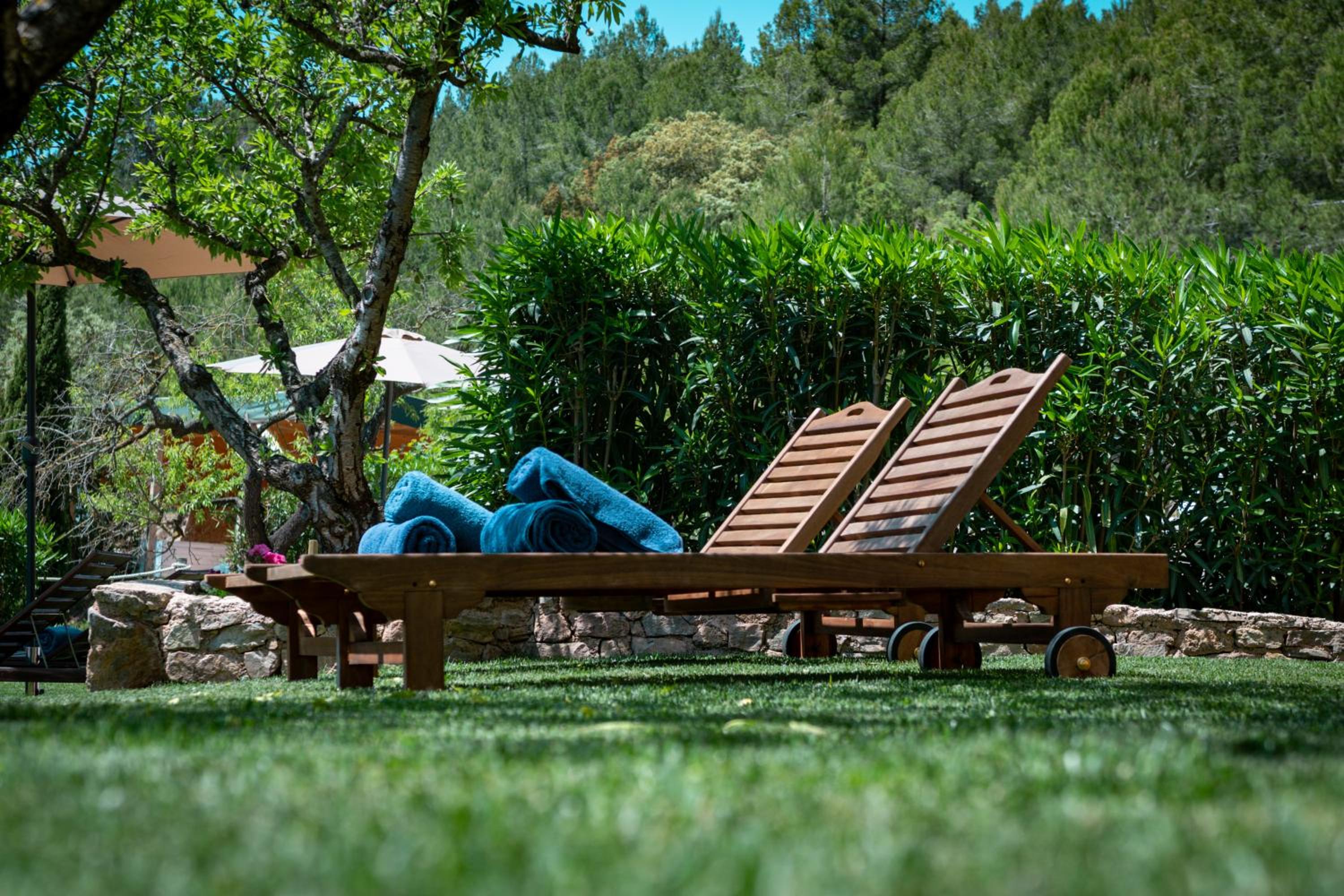 Escape to Hotel Mas Mariassa, a serene retreat nestled in nature. Enjoy the lush garden, relax on the chill-out terrace, and take a dip in the inviting outdoor pool.