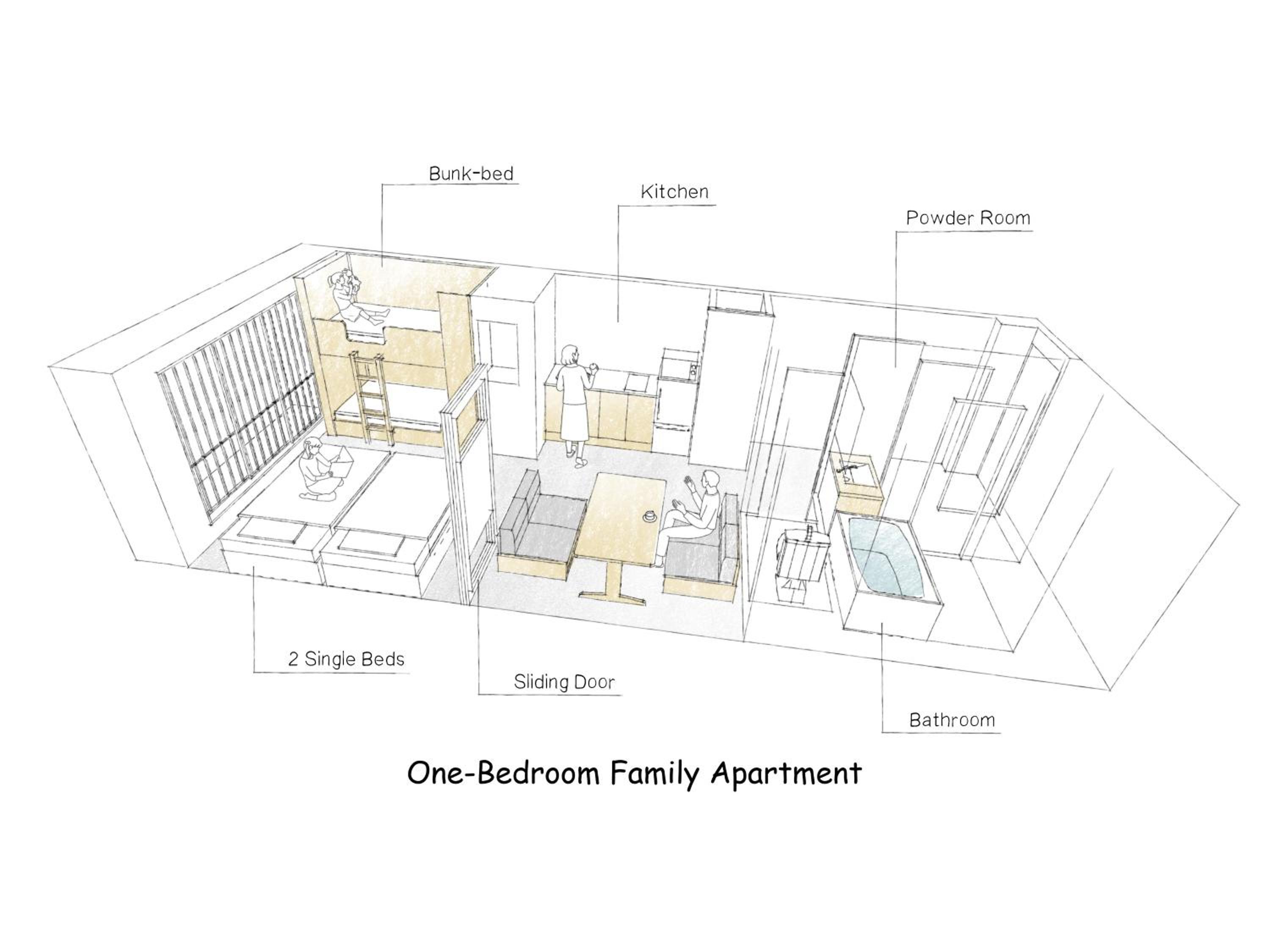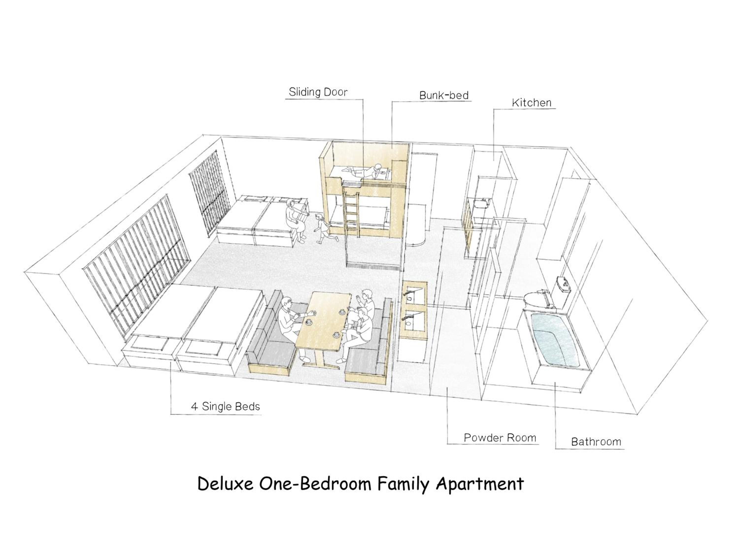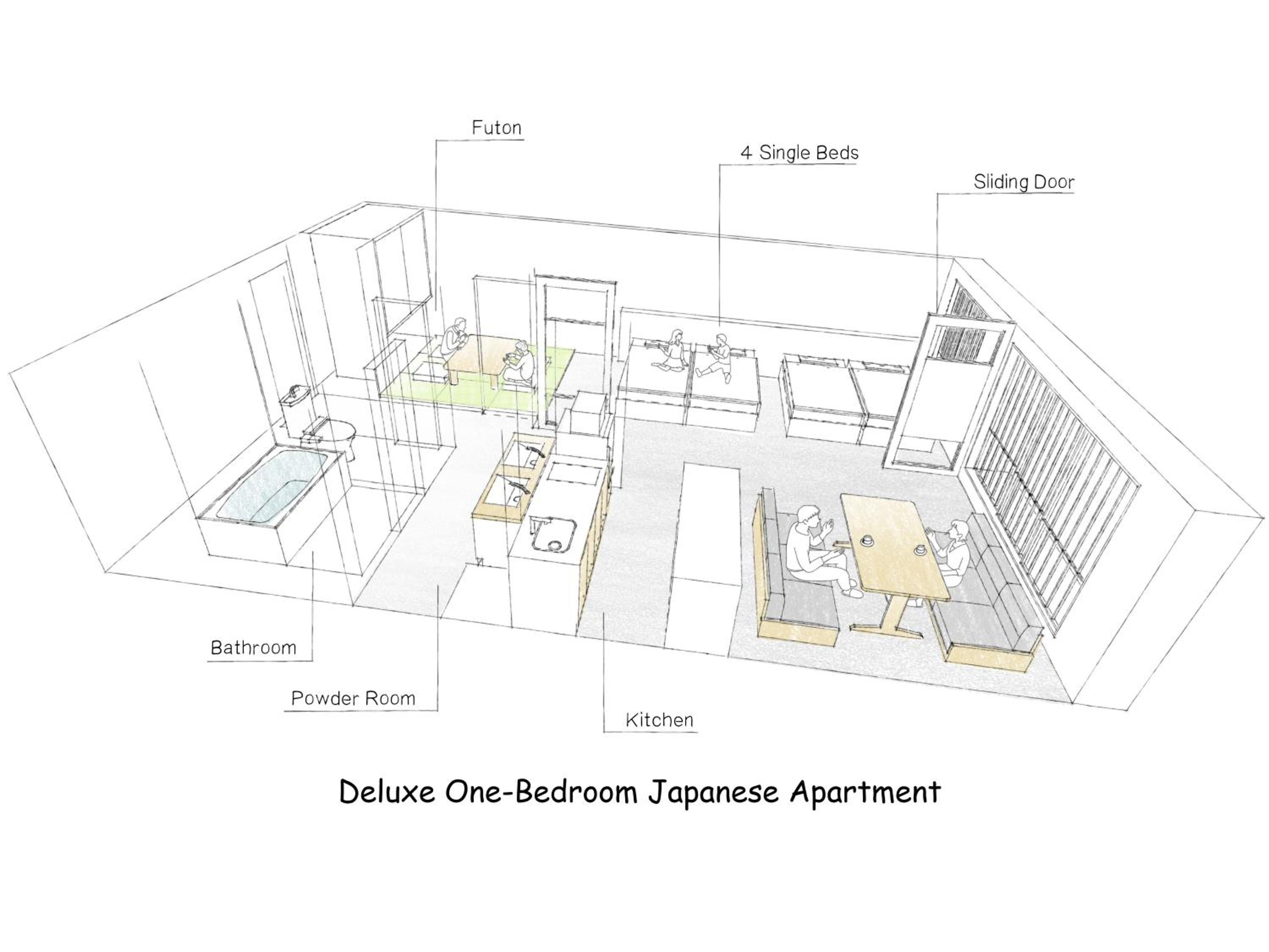 Good place for family vacation with 4 beds available. Full equiped-facililties in the room. Familymart is very close to the hotel.