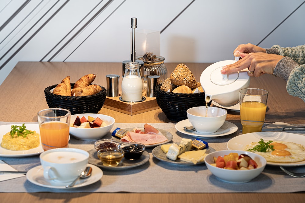 Super lækkert hotel med tilhørende p-hus med lader til el-bil. Lækker morgenmadsbuffet.