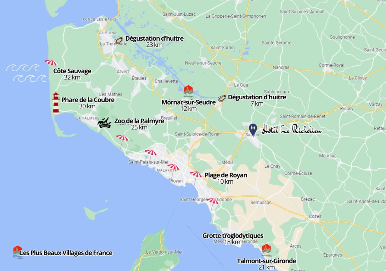 Located just 10 km from the beach, Hotel Le Richelieu is in close proximity to the Atlantic coast. Enjoy beauty treatments in the spa town of Saujon and explore the picturesque historic villages nearby. The friendly owners and staff ensure a comfortable and enjoyable stay.