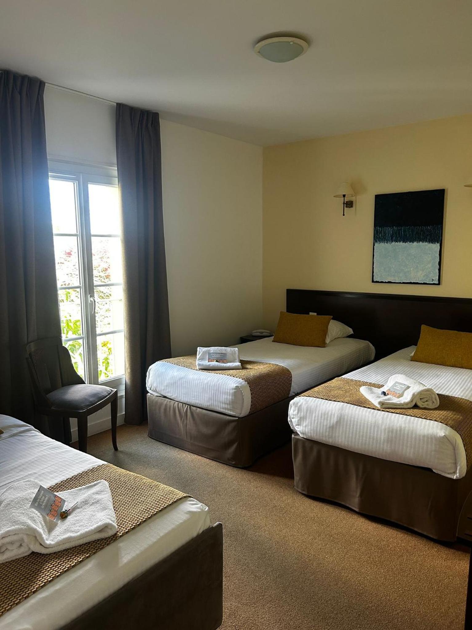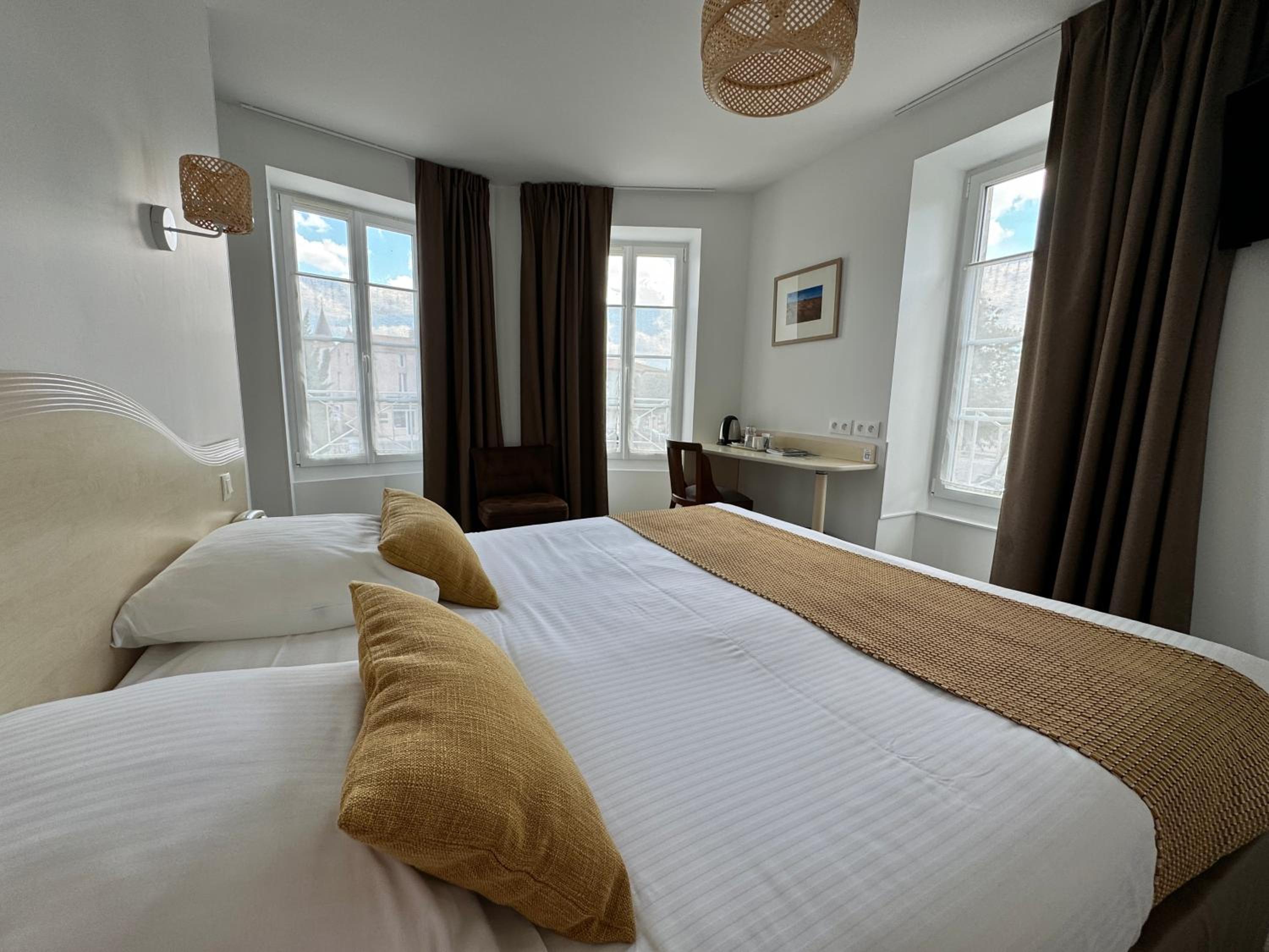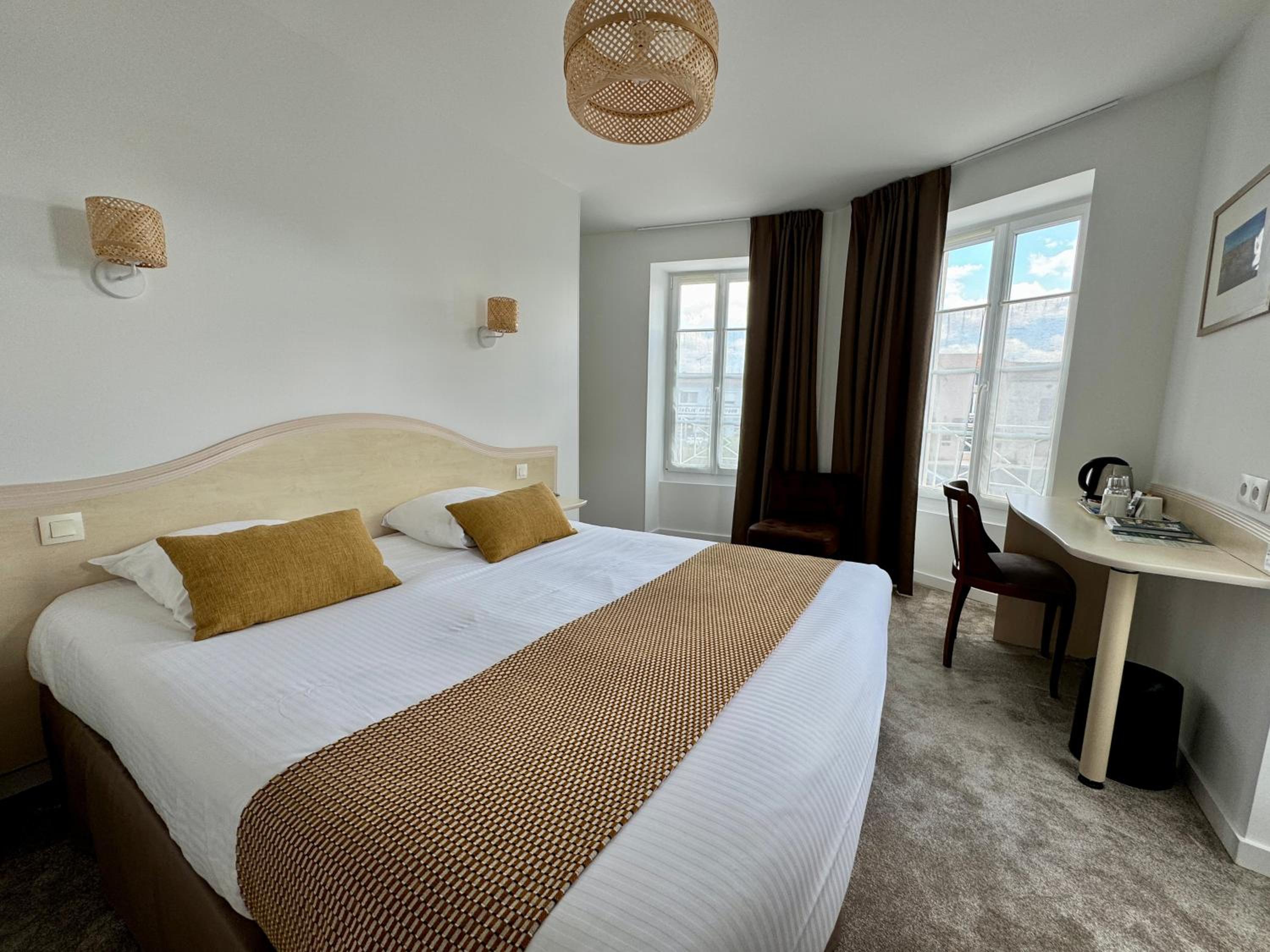 Rien de négatif, mais c'était une réservation d'urgence, un autre établissement nous ayant laissé dans la rue, et la chambre réservée était au 2eme étage, impossible pour moi sans ascenseur. L'hôtel nous a mis à disposition une très petite chambre au 1er étage avec deux lits simples pour nous dépanner qui était fonctionnelle sans plus. Je ne commente donc pas la chambre.