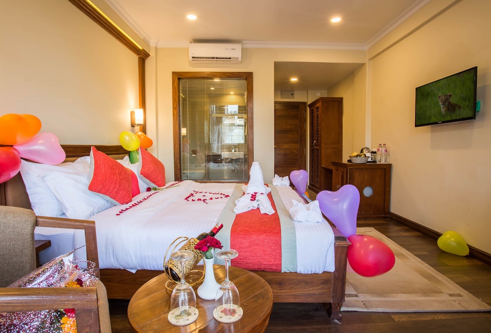 A lovely hotel. At least 4 star by British / European standards. I had booked a different hotel but moved here once I saw it an the rooms. Very central and walkable to the lake and all the delights on lake road. I would highly recommend this hotel if staying in Pokhara.