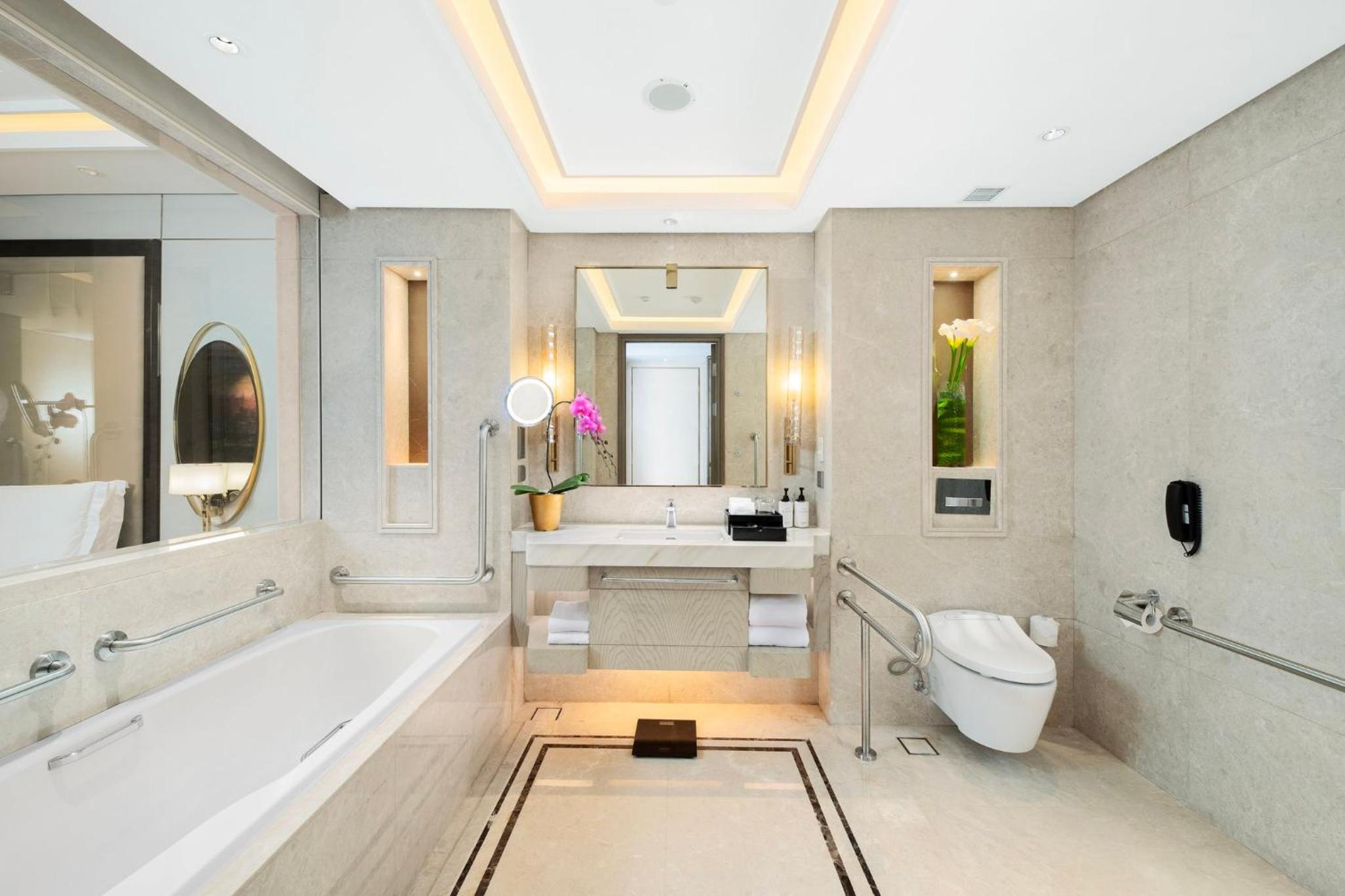 Luxurious Accommodation: Each elegantly designed room at InterContinental Hotels - Jakarta Pondok Indah offers comfortable bedding, a flat-screen TV, and stunning city views. The en suite bathroom features a separate bath and shower for added comfort.