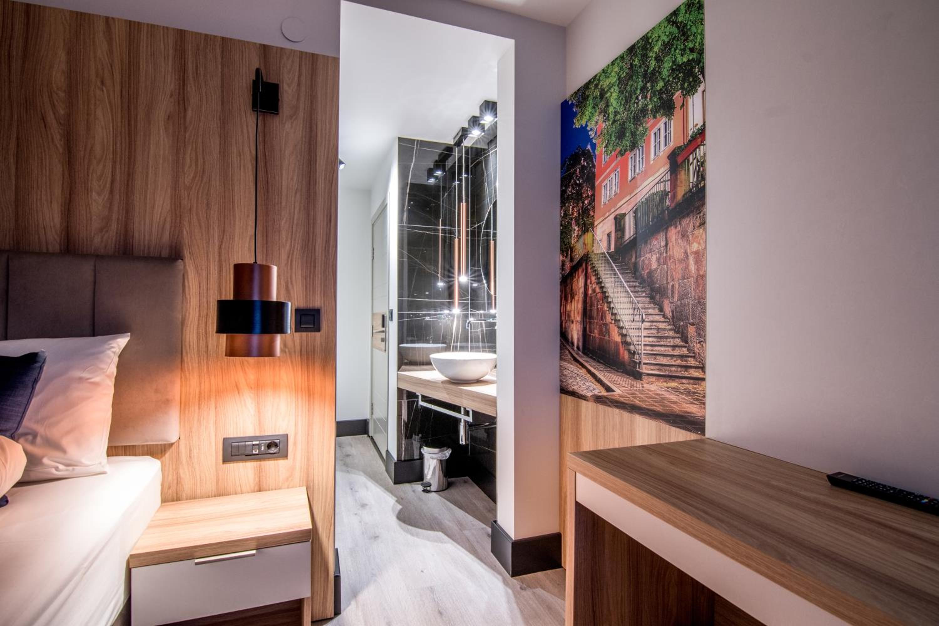 Modern eingerichtetes Hotelzimmer, sehr weiche Betten, Preis-Leistungs-Verhältnis okay