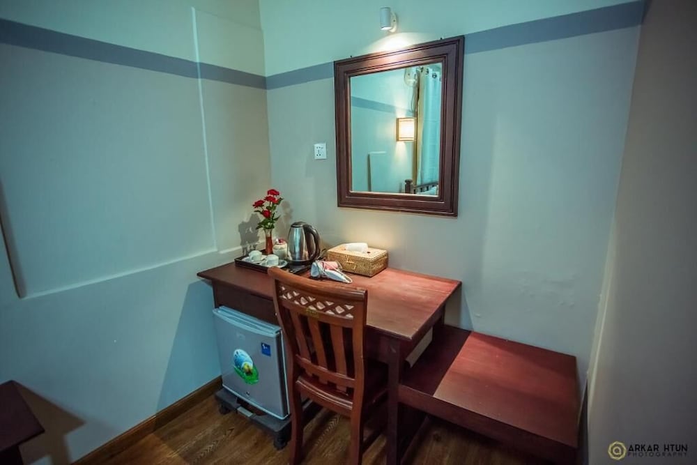 快適ステイでした。リーズナブルな価格と毎朝の美味しい朝飯。毎朝4時からひとりのミャンマーおばさんの手づくりです。ミャンマー旅行中一番美味しかった。ホテルは有名なナンダレストラン近く。近くの薬屋の外の旅行案内ガイド(1人)は大変親切で、安心して3日間の乗り物手配しました。ホテル近くにはクイーンレストランもあり、夕食は3回利用。ホテルスタッフは英語が通じないときもありましたが、力になりたい気持ちが良く伝わりました。蛇足ながら、マンダレーからの船で船着き場に到着。タクシーがホテルまで、15000チャットとのことでしたが、ホテルは案外近く、喧嘩して10000のみ支払。半分以下ぐらいです。
